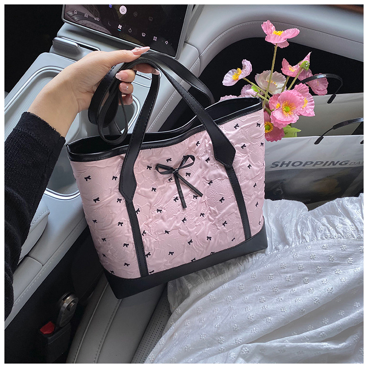 新しいファッションインバレエスタイルシアサッカーシャーリングリボンラブトートバッグ大容量ファッションショルダーバッグ