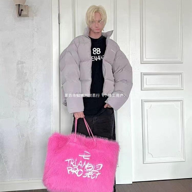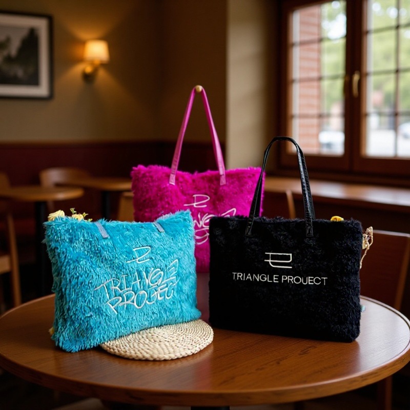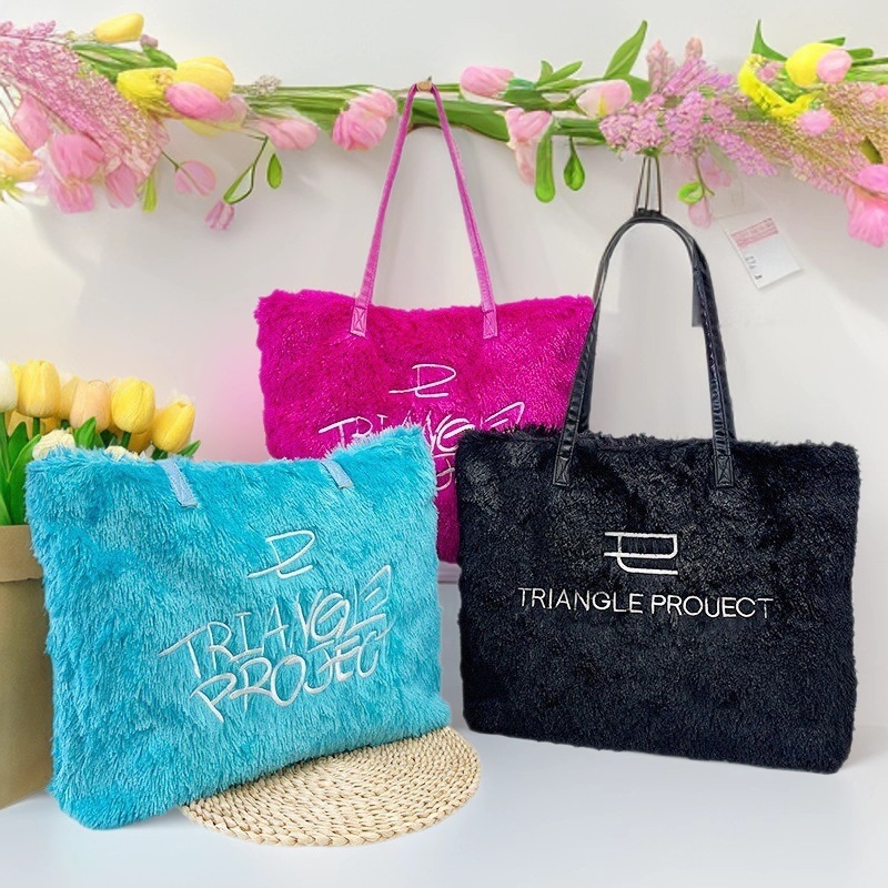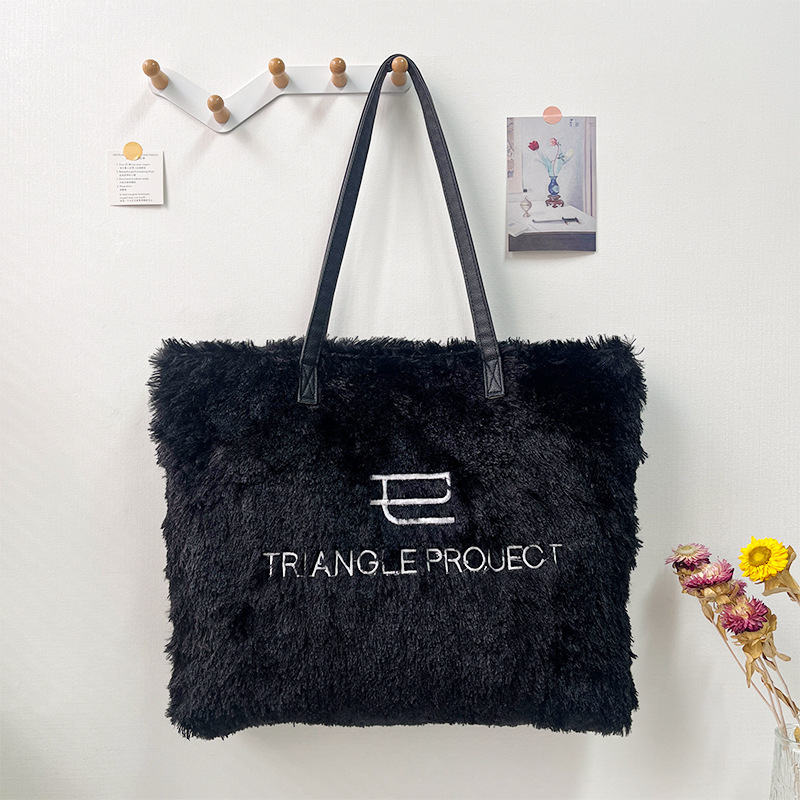 TRIANGLE PROJECT 23AW 刺绣仿皮草手拎手提单肩托特包男女大包