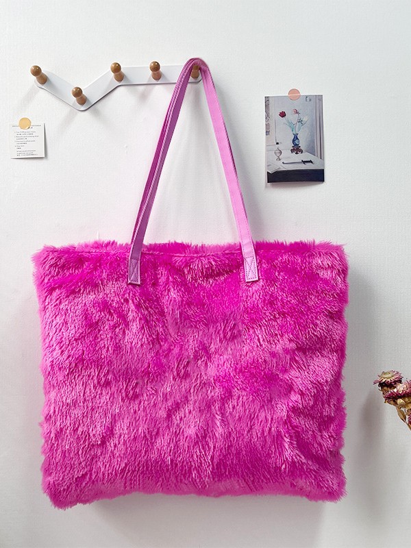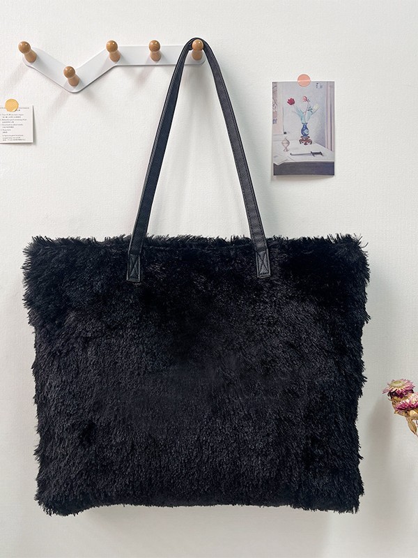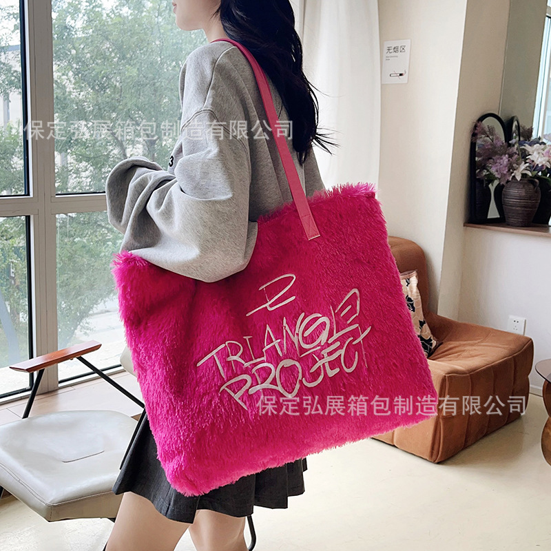 跨境新款毛绒包包女托特包通勤时尚百搭手提包大容量毛毛单肩包