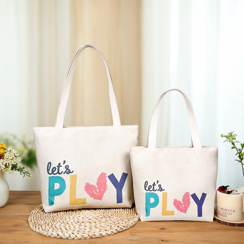 クロスボーダー新レターキャンバスバッグ、ファッショナブルな春夏多用途文学トートバッグ、大容量ショルダー弁当バッグ