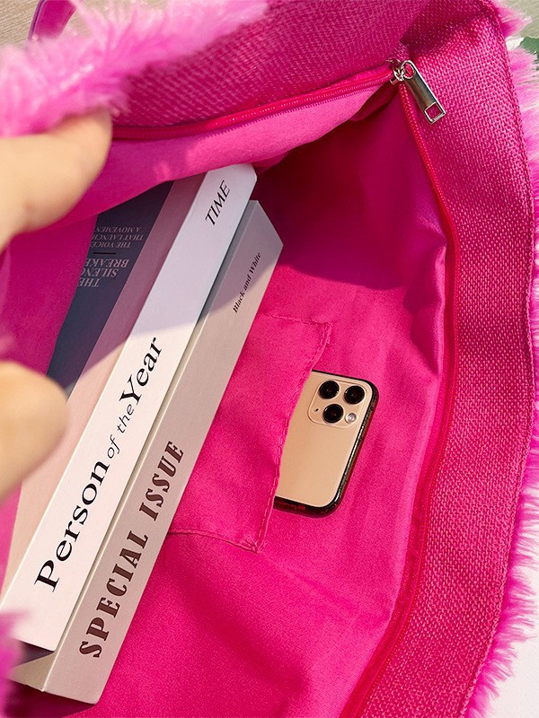 2024年秋 欧米風ファッションハンドバッグ トートバッグ ピンク刺繍入りぬいぐるみ風ショルダーバッグ 大きめ斜め掛けバッグ