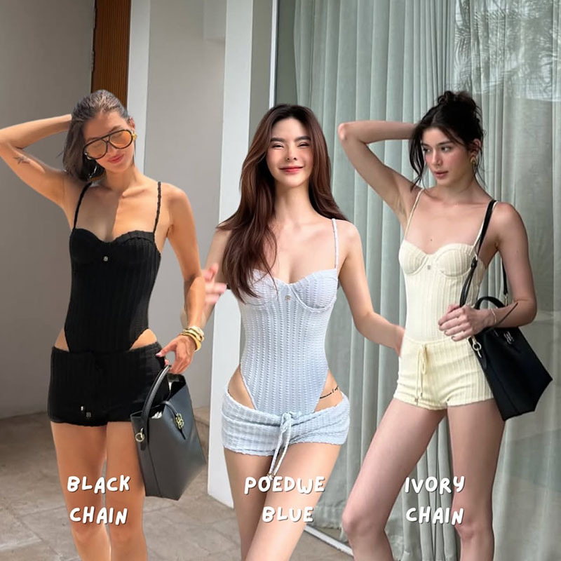 5色ニットクロスボーダー2025韓国新スタイルバックレスストラップハイウエストお腹カバー女性用コンサバワンピース水着