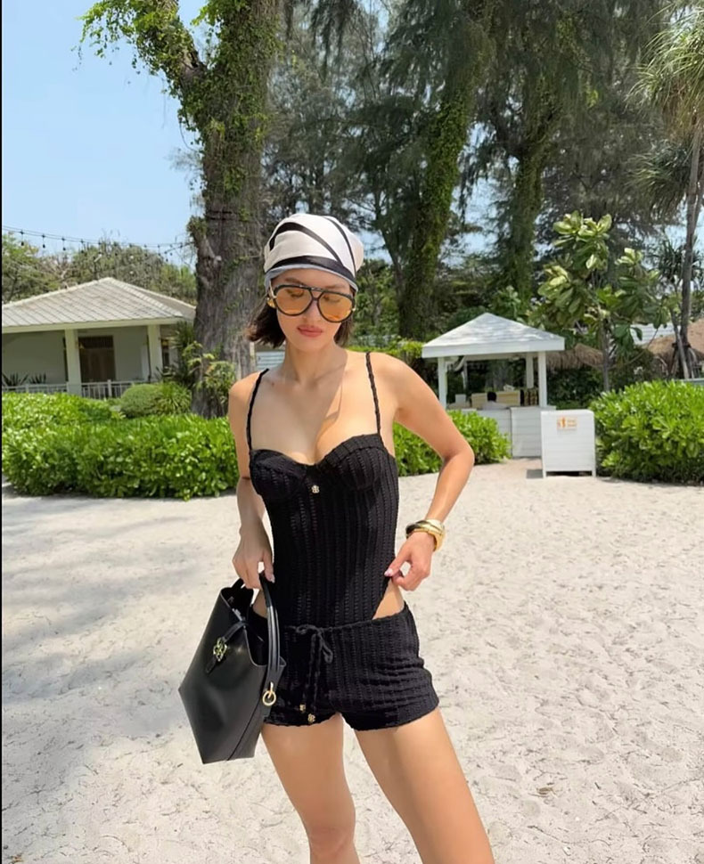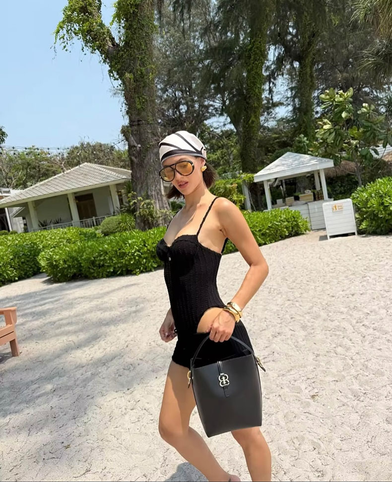 タイ式レトロ格子長袖日焼け止めワンピース水着女性インスタ風リゾート温泉高級着痩せ水着