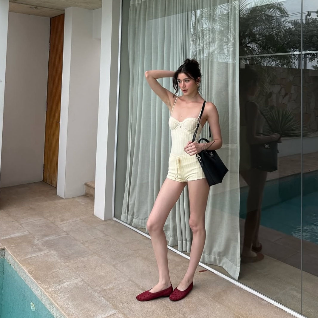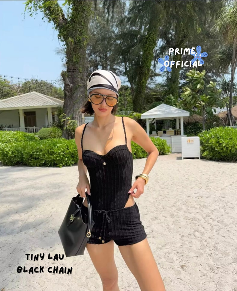 韓国インスタ風高級感軽豪華レトロ保守長袖ブラウス三点セットストラップセクシーストライプ水着レディース