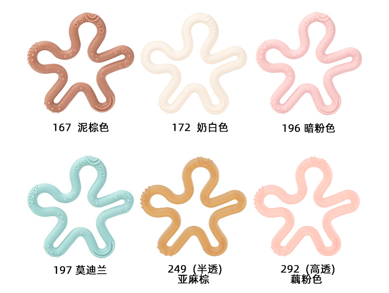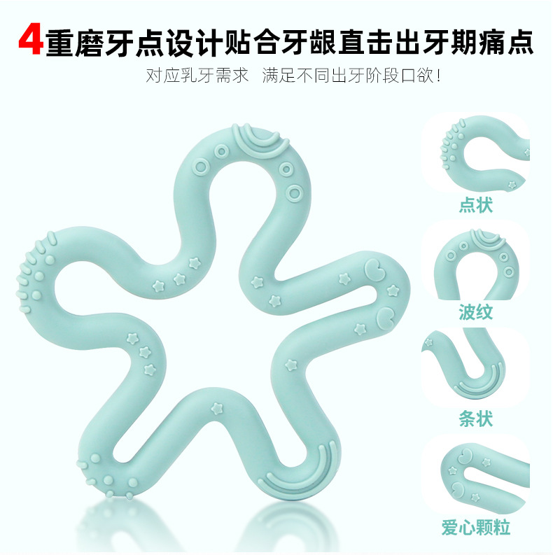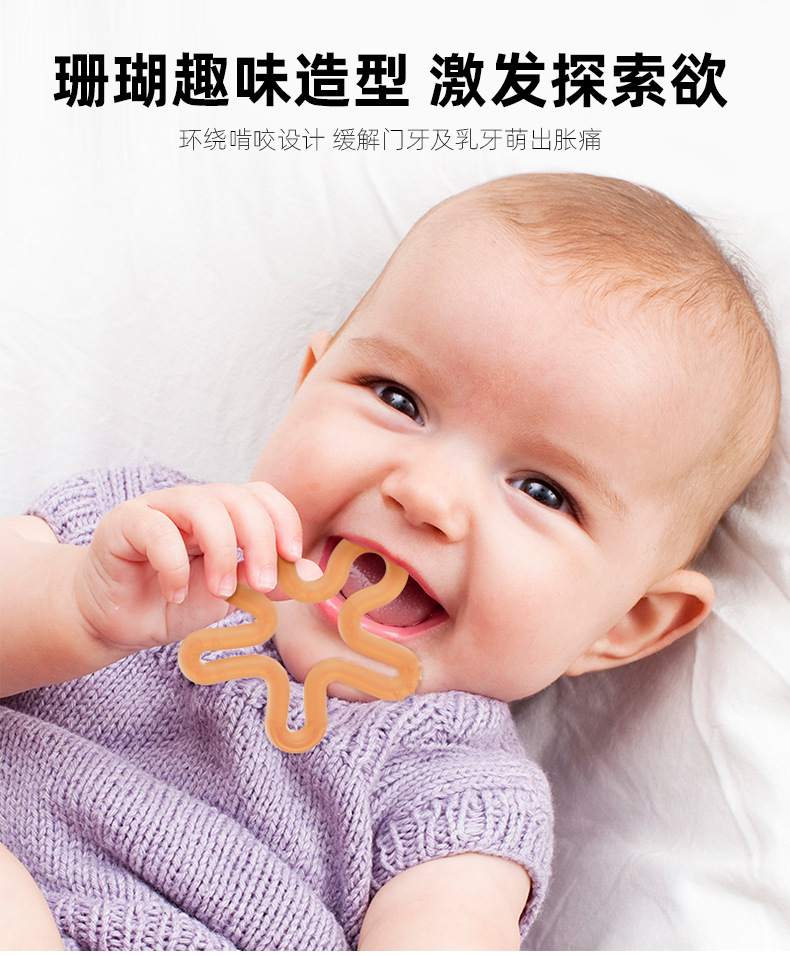 新しいサンゴ歯固め、複数のなだめる赤ちゃんの歯が生えるポイント、食品グレードのシリコーン歯固め、生後 1 ヶ月の歯固め