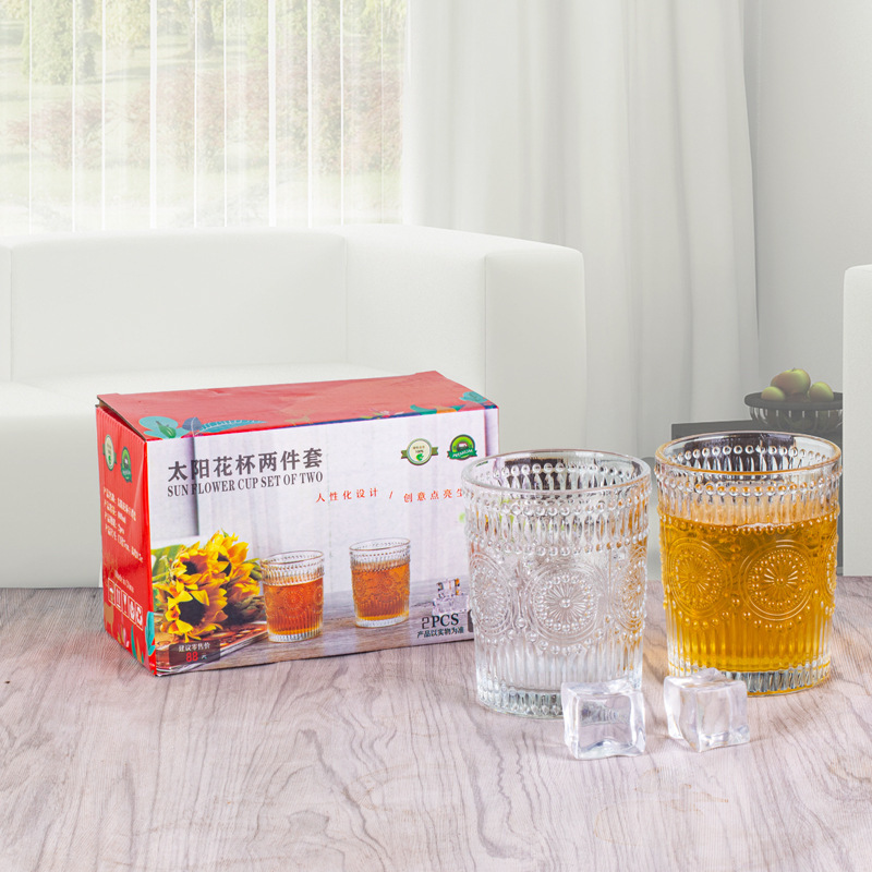 ジュエリーボックス北欧レトロウイスキーひまわりガラスエンボスジュースカップコーヒーカップお土産カップ
