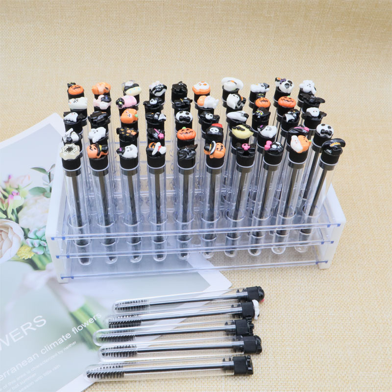 2024クリスマスハロウィーン試験管まつ毛ブラシ漫画チューブブラシ付き使い捨てまつ毛ブラシ透明チューブまつ毛櫛