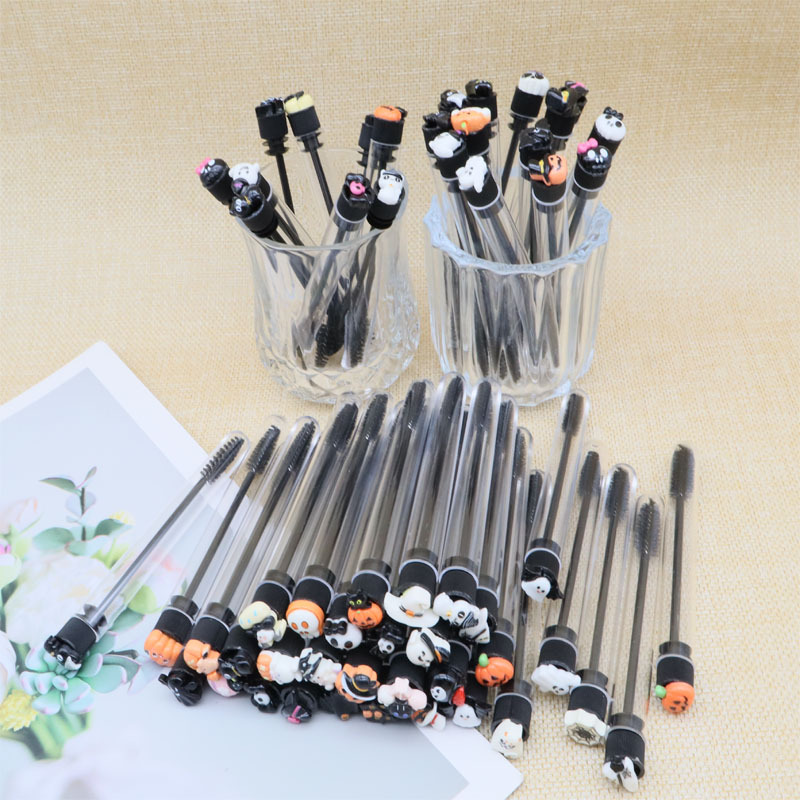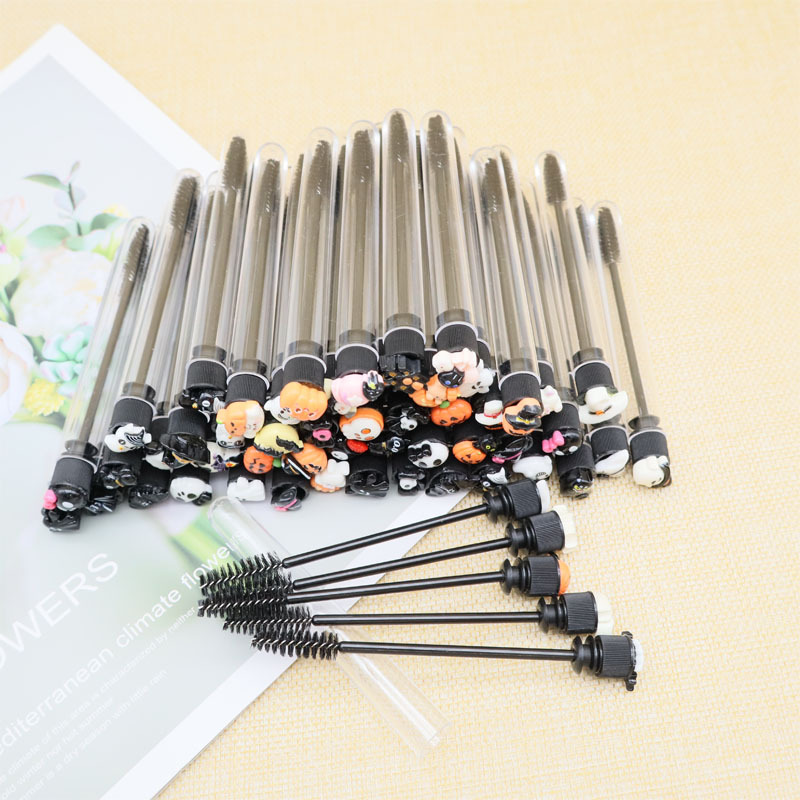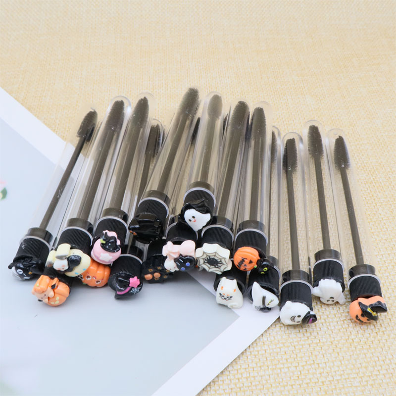 ハロウィン用チューブ入りまつげブラシ、使い捨てクリスタル柄まつげブラシ、透明チューブ付きメイクブラシ