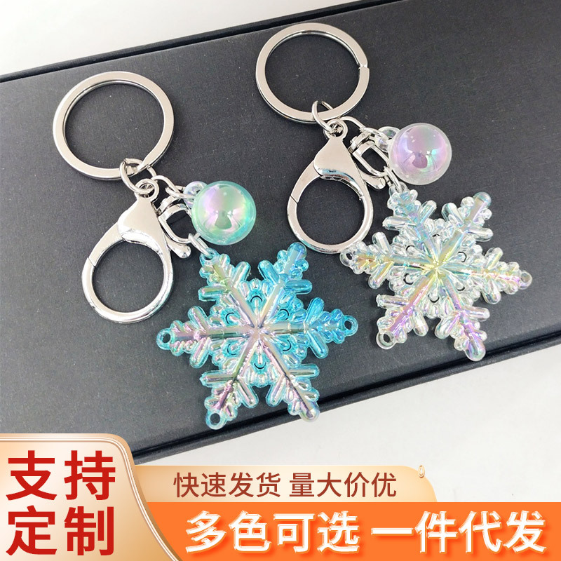 新商品の創意のまぶしい色のアクリルの雪の花のペンダントの七色の気泡のボールの鍵は女性の包みの装飾品を掛けます。