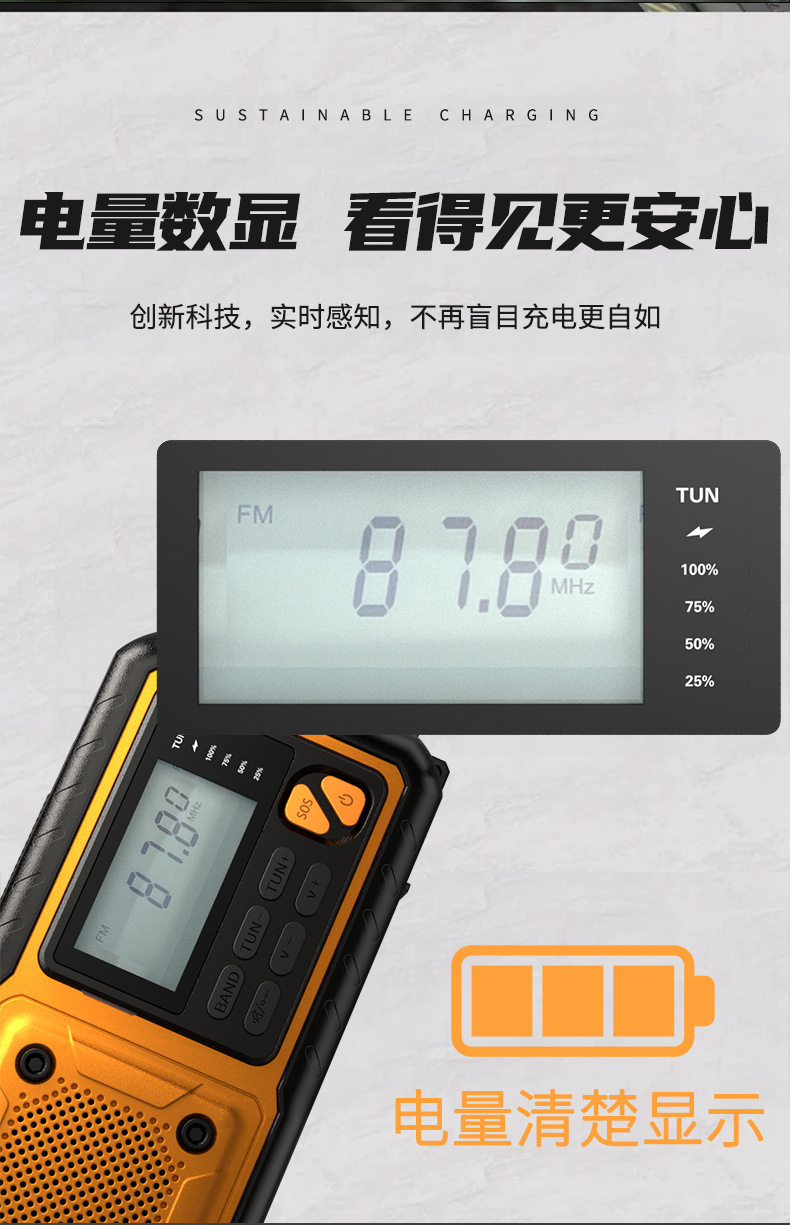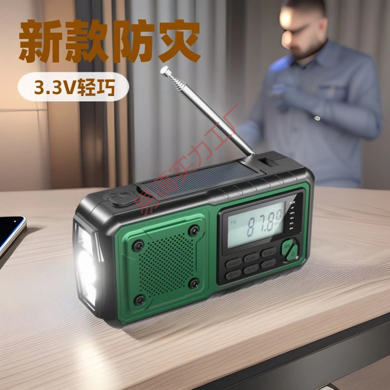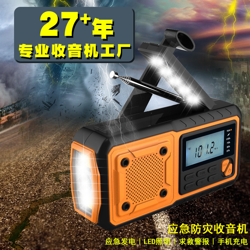 厂家供应多功能收音机太阳能手机充电手摇发电应急防灾带LCD屏幕