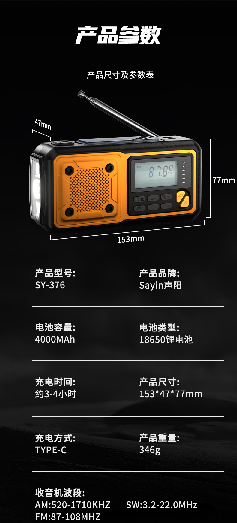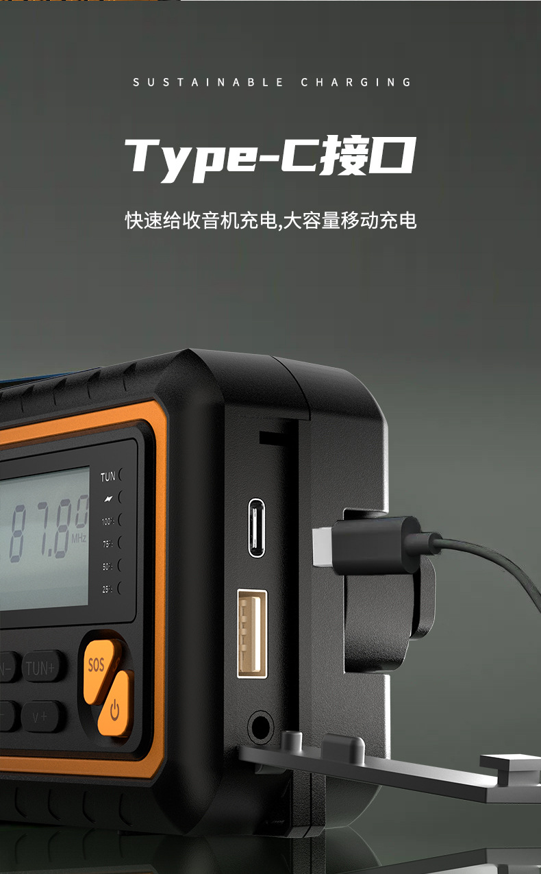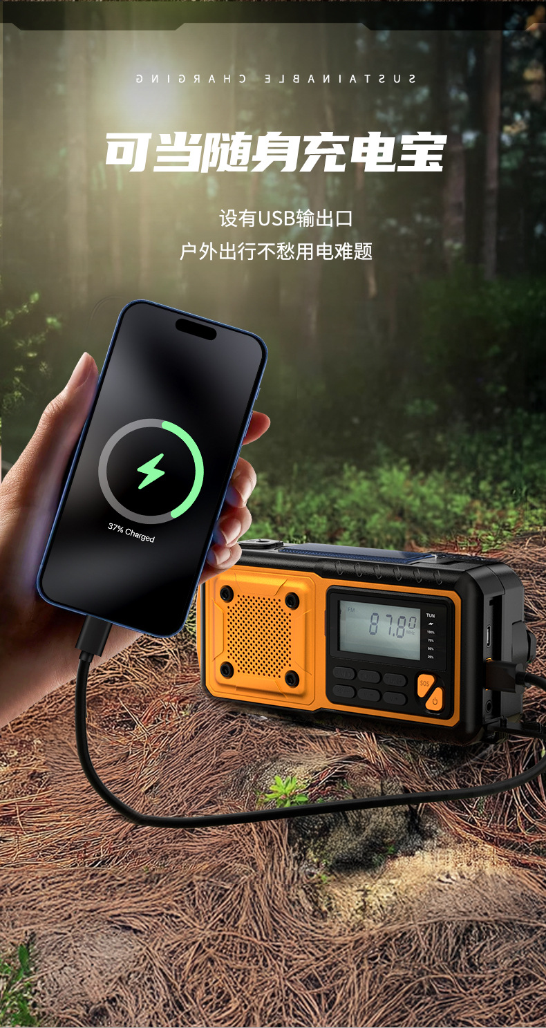 新型防災天気予報太陽光手回し発電緊急ラジオモバイル電源付き屋外携帯