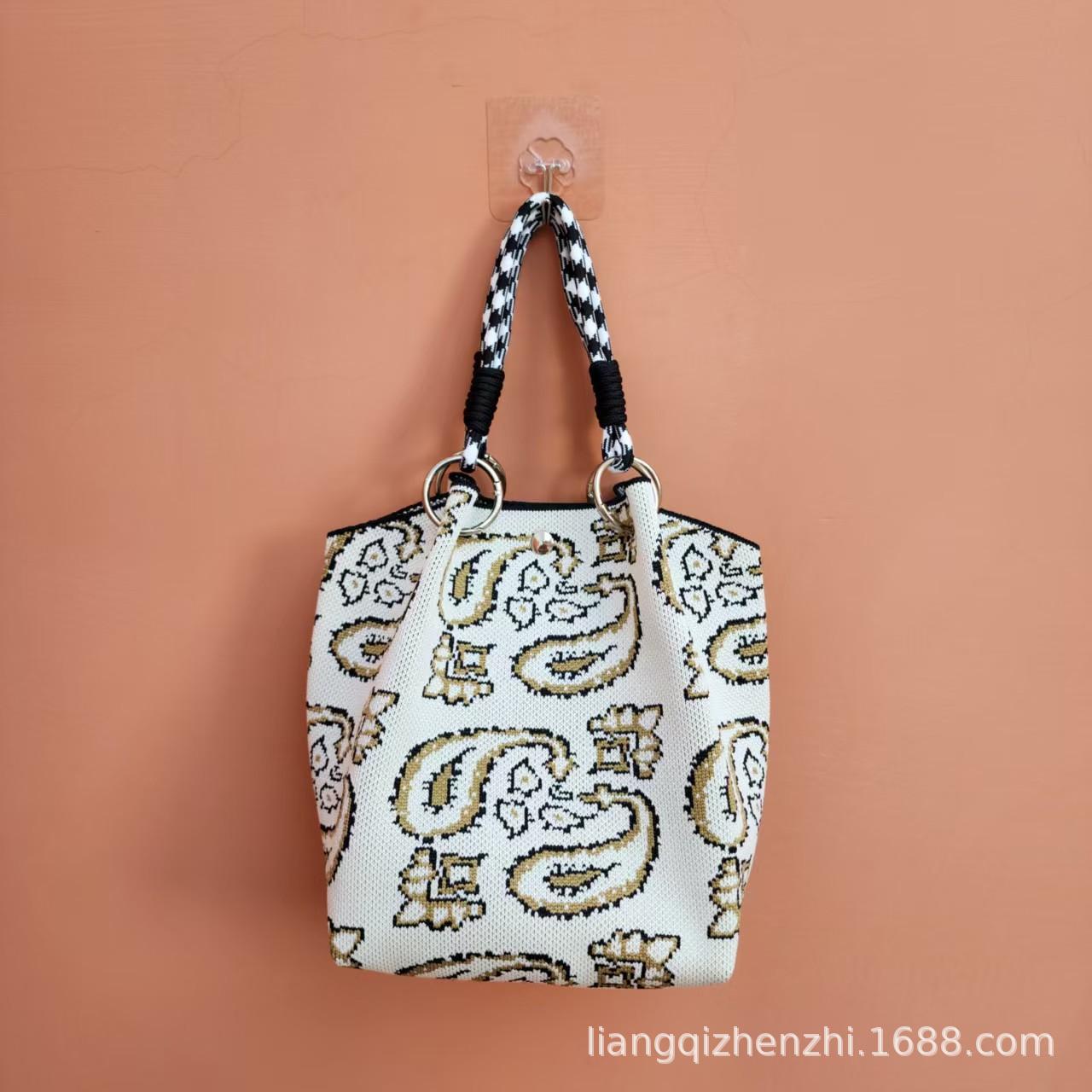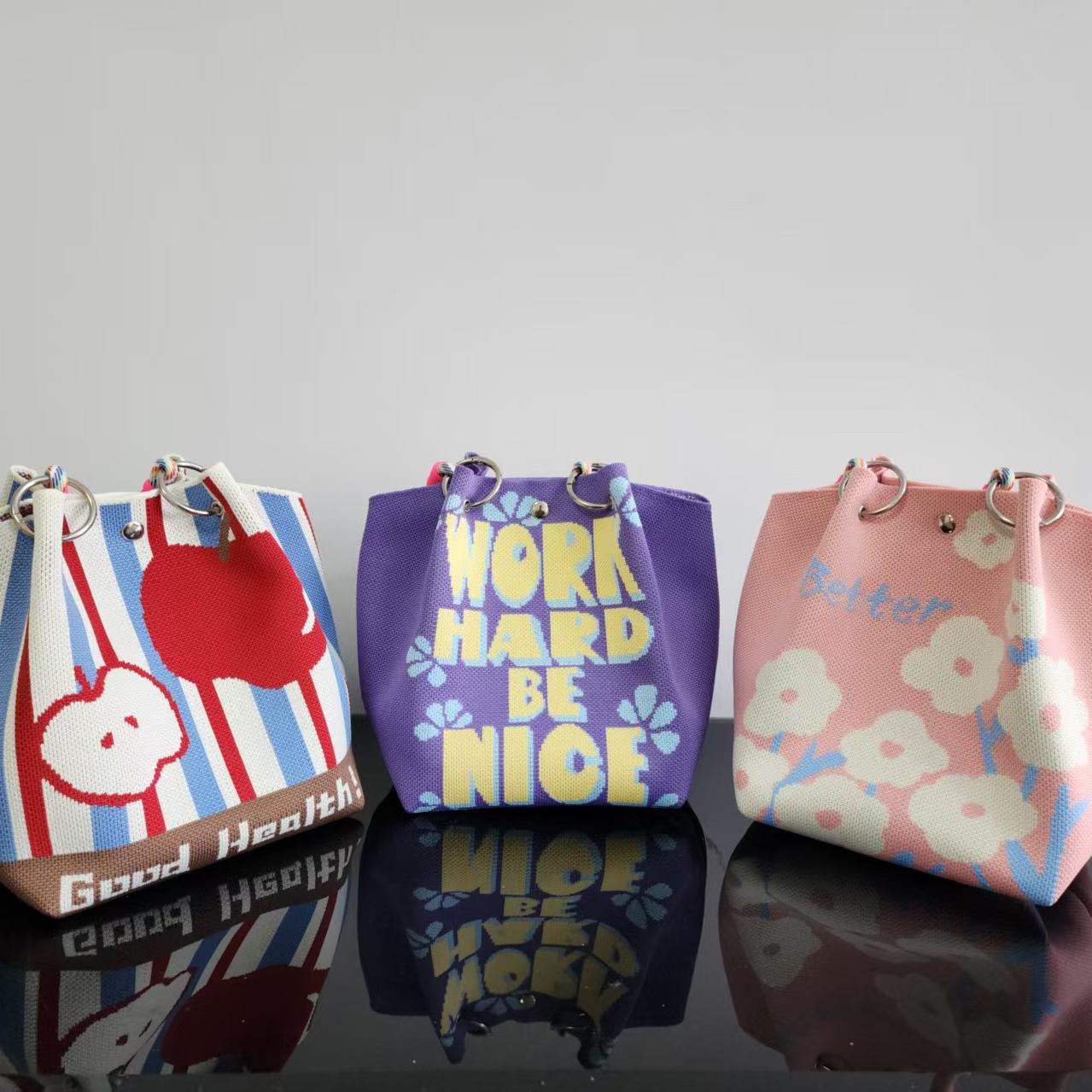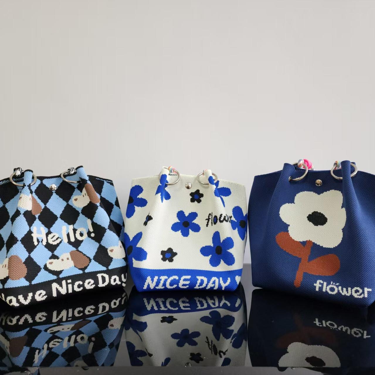 日韓風新作ニットハンドバッグ、携帯に便利、仕事、外出、ビジネスに最適、大容量トートバッグ、通勤用、小さめスクエアバッグ