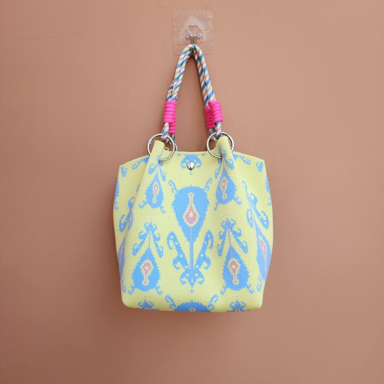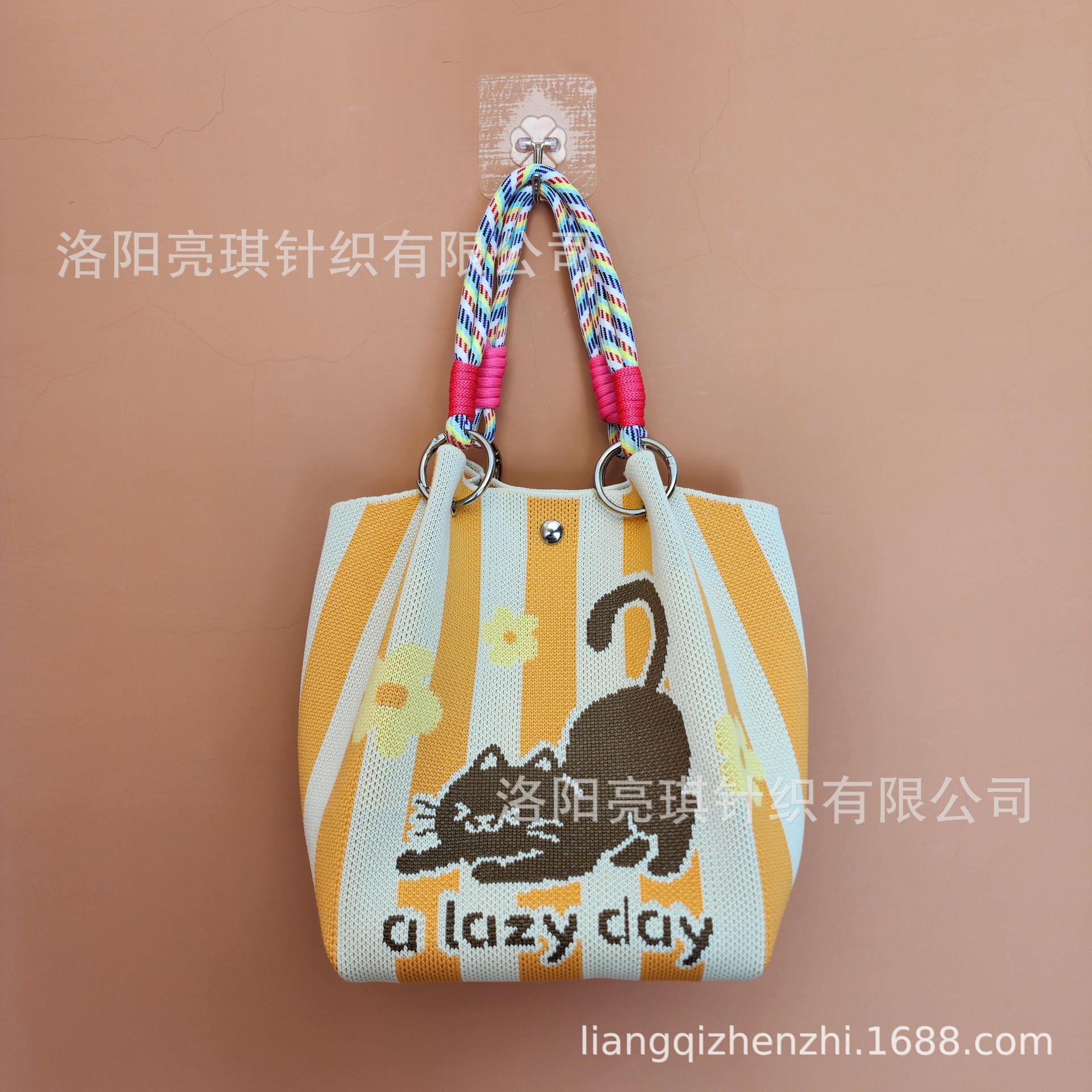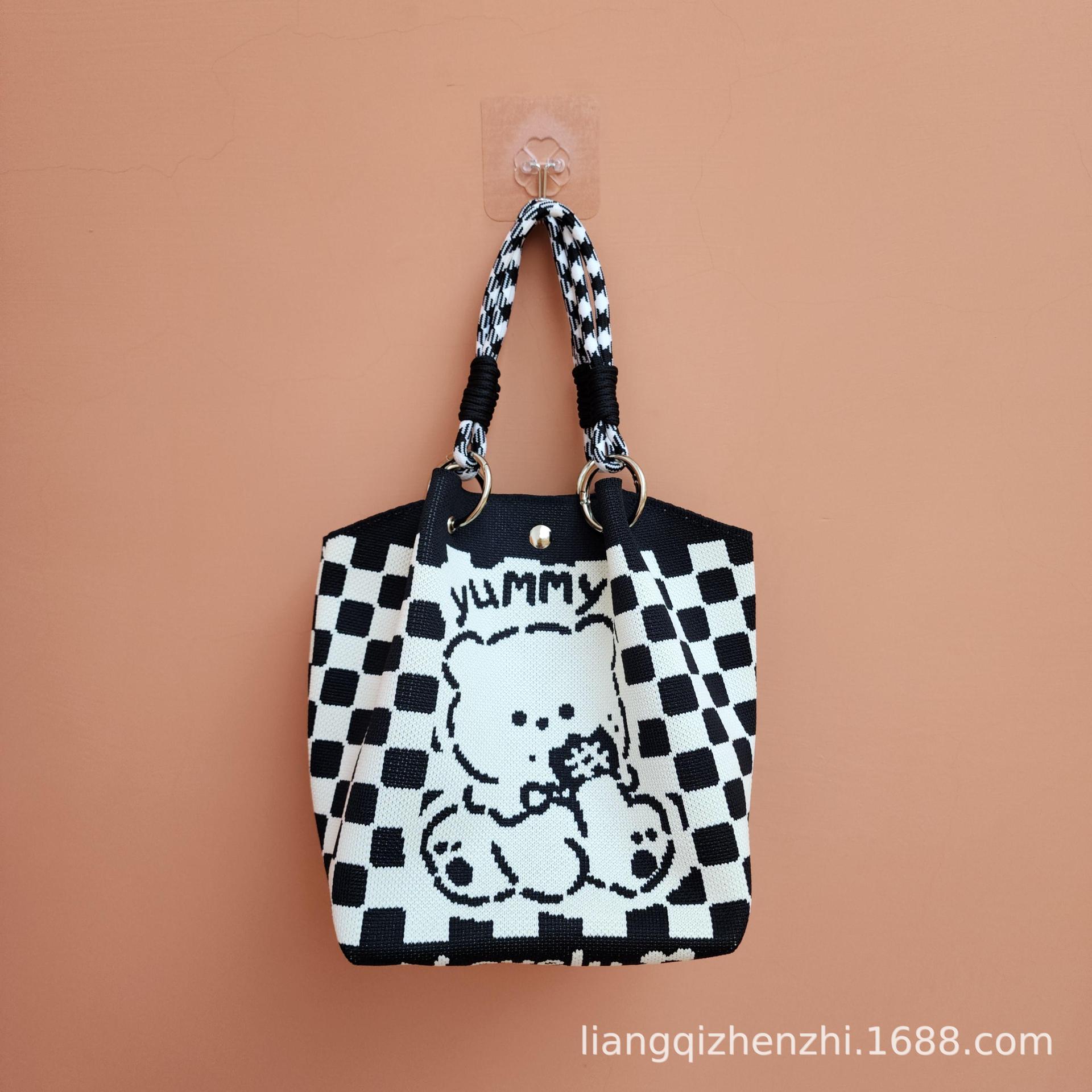 日韓風新作ニットハンドバッグ、携帯に便利、仕事、外出、ビジネスに最適、大容量トートバッグ、通勤用、小さめスクエアバッグ