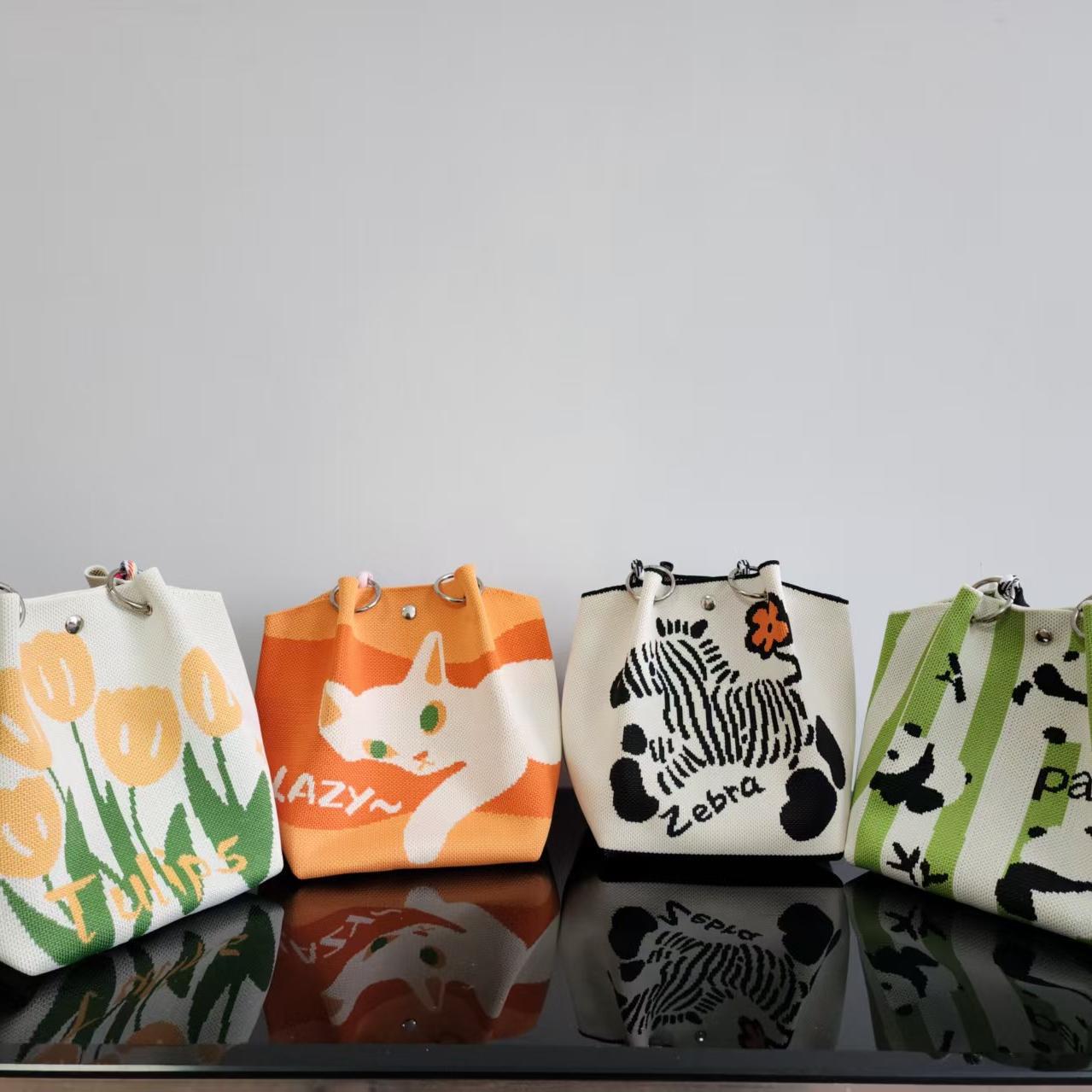 2025 新しい漫画携帯電話バッグニットバッグメッセンジャーバッグ織ファッション多用途ニットバッグ小さな正方形バッグ