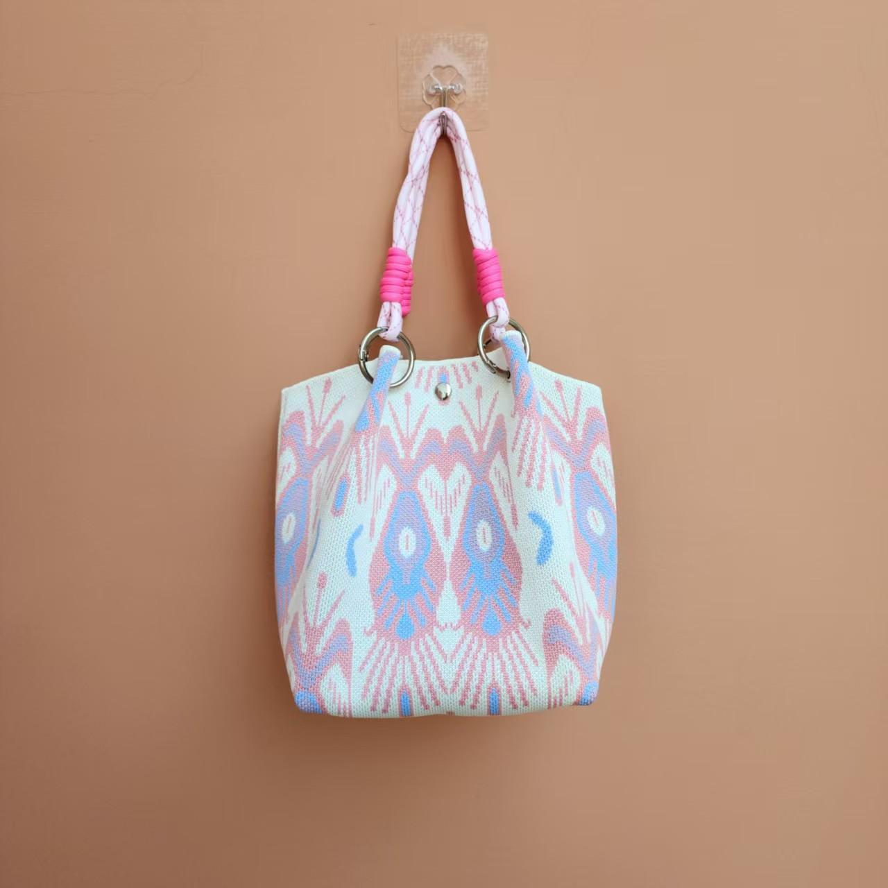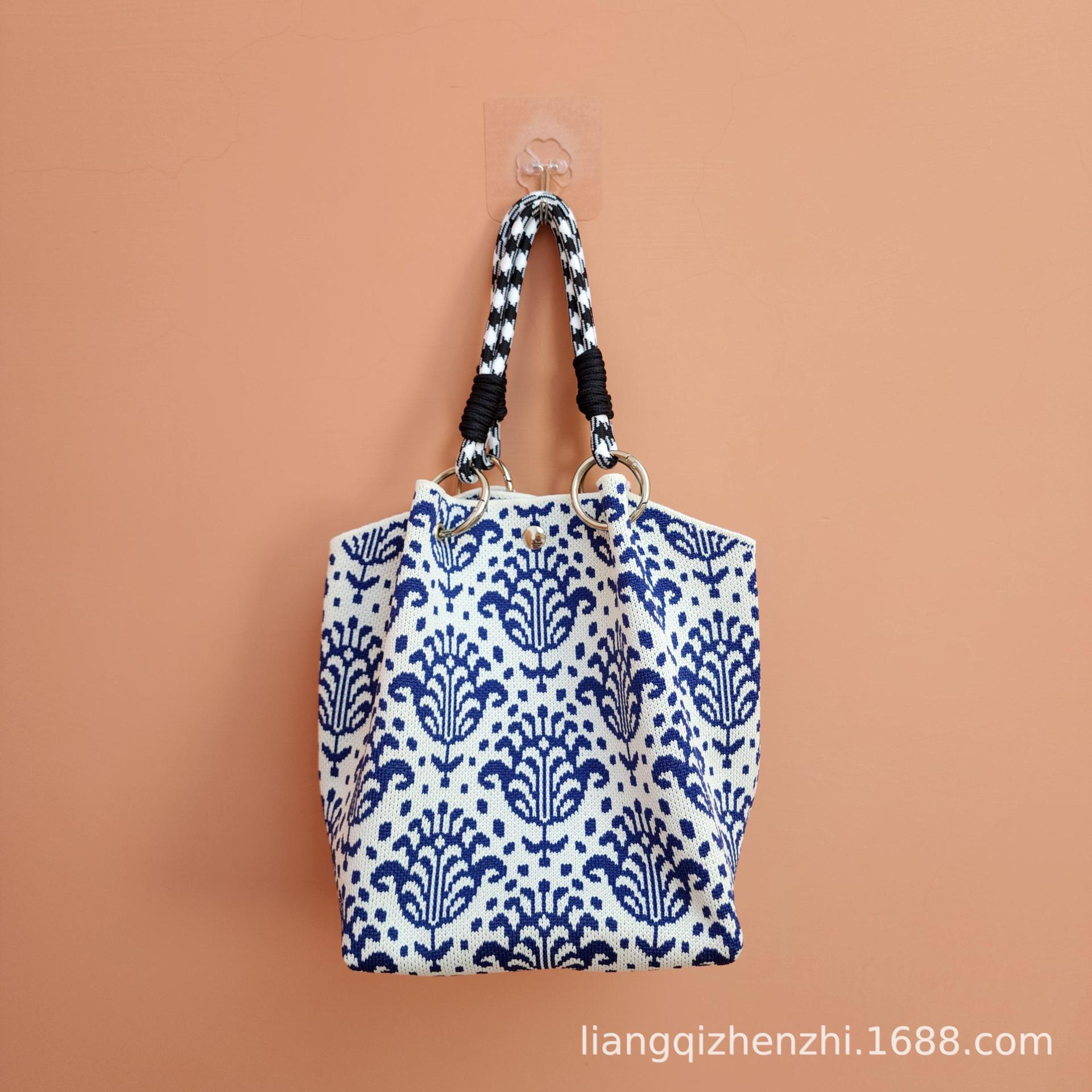 2025ins 人気のハンドバッグフライウーブントートバッグレディースバッグウールコントラストカラーバッグ日本と韓国版多用途カジュアルバッグ
