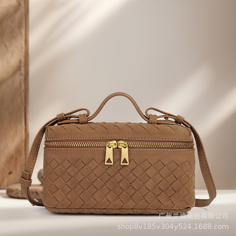 现货韩版盒子包斜挎编织百搭饭盒包双向拉链开合手提包潮流单