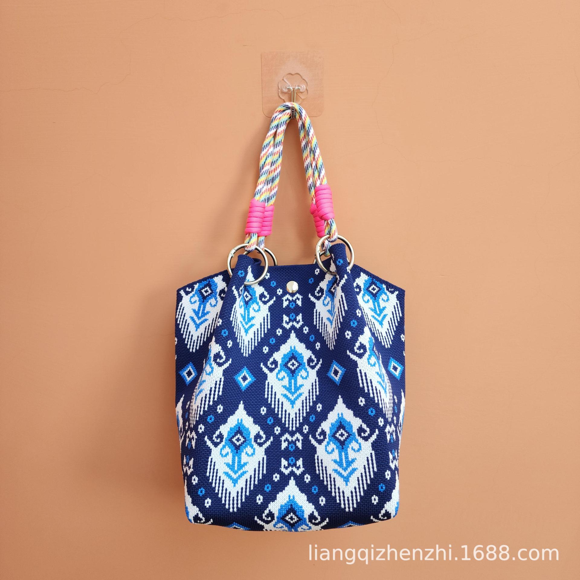 ハイエンドニッチデザインショルダーバッグクロスボディバッグレトロハイエンド布バッグ卸売鉄リングハンドキャリーエスニックトートバッグ