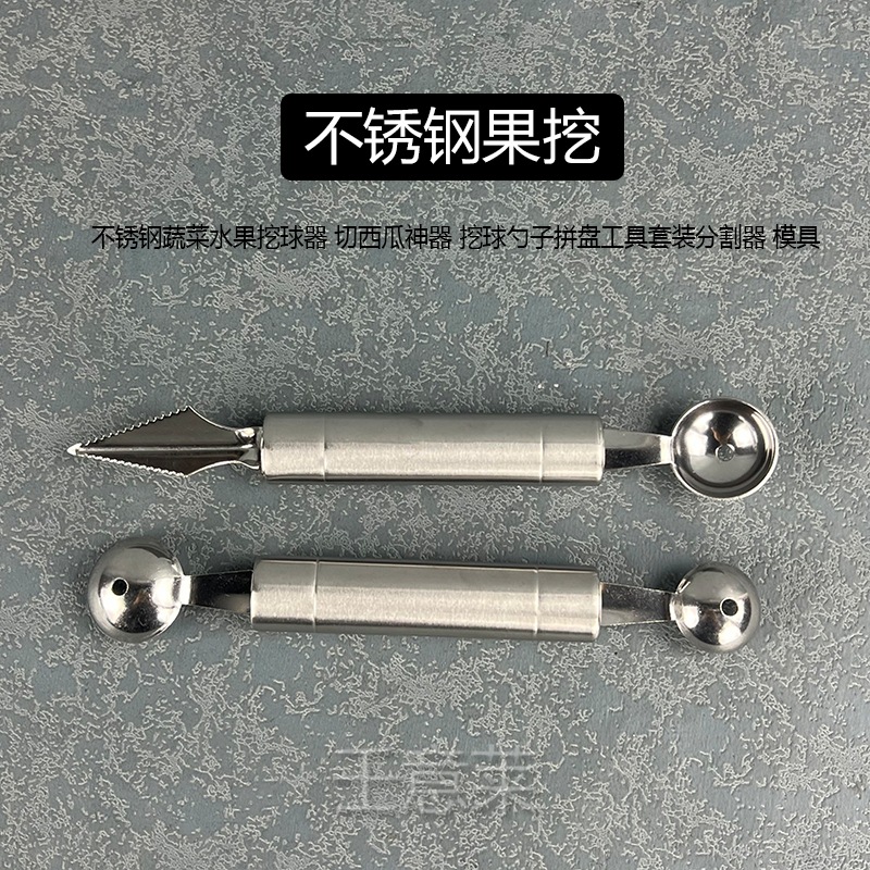 スポットステンレススチールスイカフルーツカット双頭果肉スプーンフルーツボールスクレーパー兼用彫刻ナイフ種子除去装置