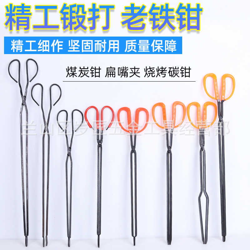 長い柄の古い火のはさみの蜂の巣の石炭の鉄のはさみの平頭のごみはフックの石炭のボールの火を挟んで農村のかまどの薪のストーブを切ります。