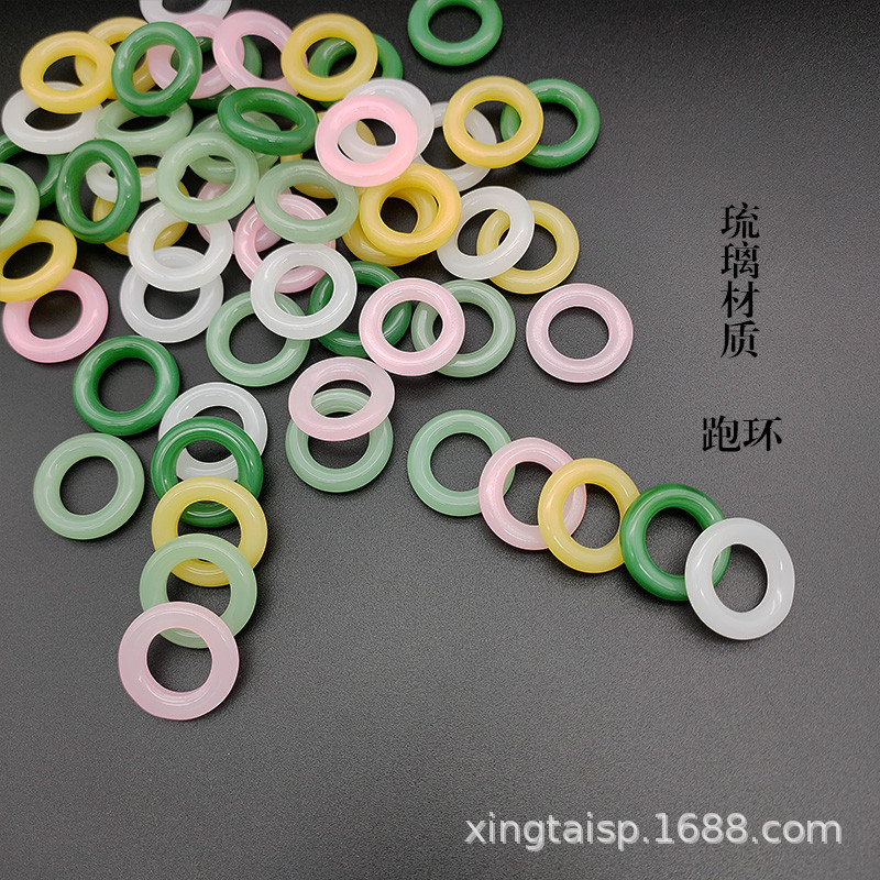 工場直販釉模造翡翠ガラスサークルランニングリングリング新しい中国風 diy 大穴ルースビーズ翡翠リングペンダント