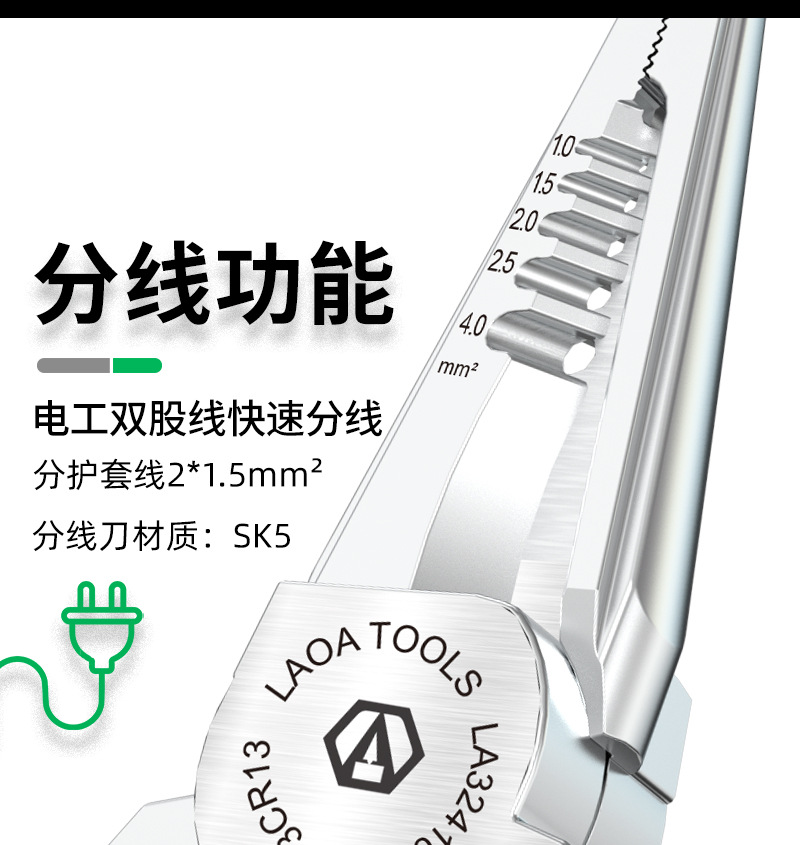 仕様とモデル 7-in-1 ワイヤーストリッパー LA324107,8-in-1 ワイヤーストリッパー LA324108 (電気測定可能)