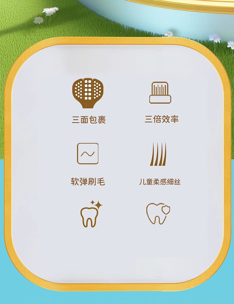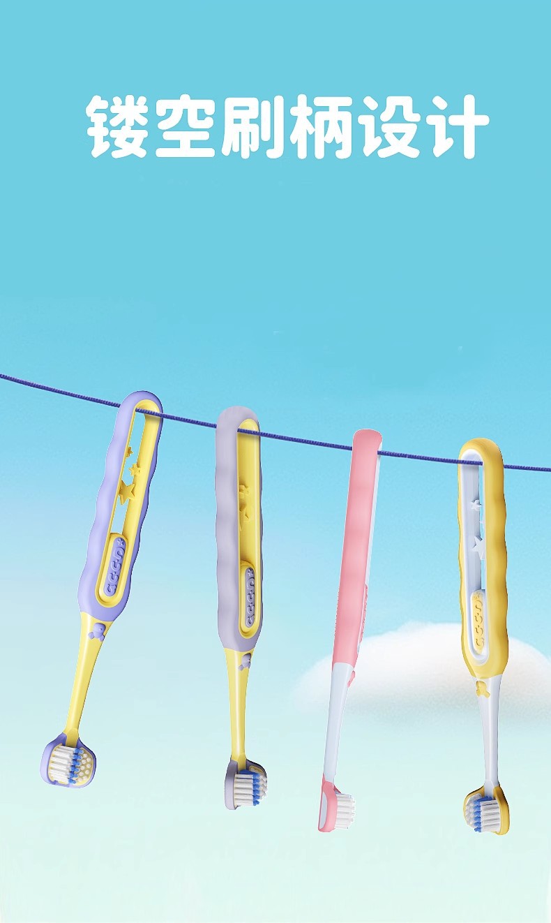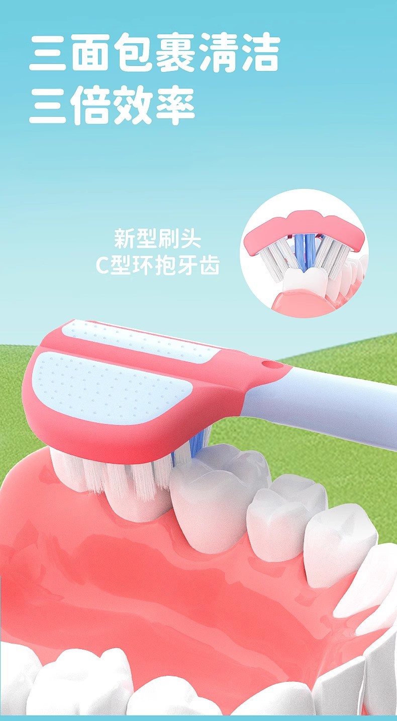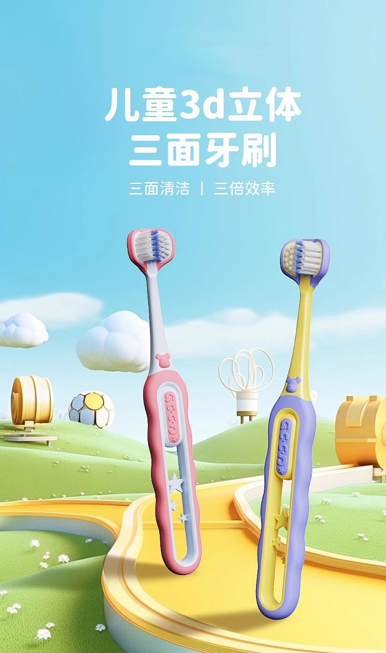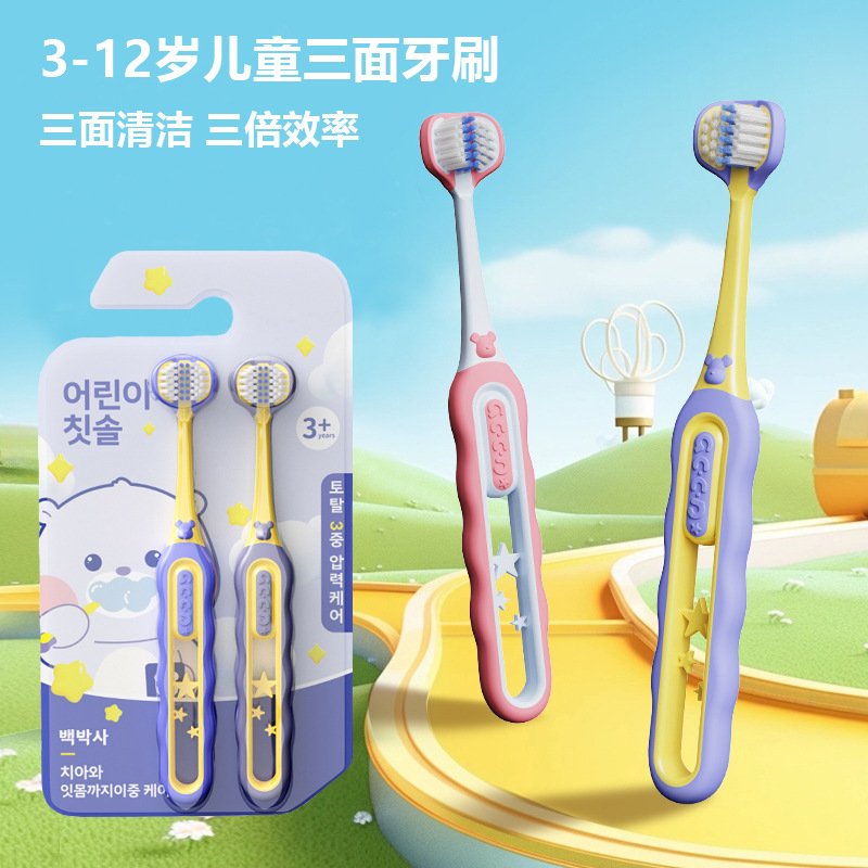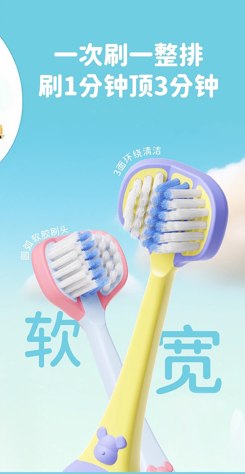 儿童三面牙刷3-12岁清洁护龈三头儿童牙刷软毛高级4支可拆独立装