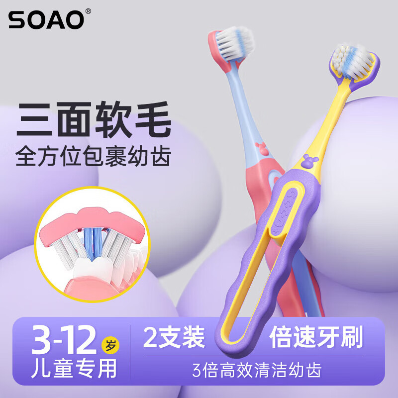 SOAO 子供用三面歯ブラシ C エンド人気の柔らかい毛歯ブラシ 6 から 12 歳の歯ブラシ在庫卸売子供用歯ブラシ