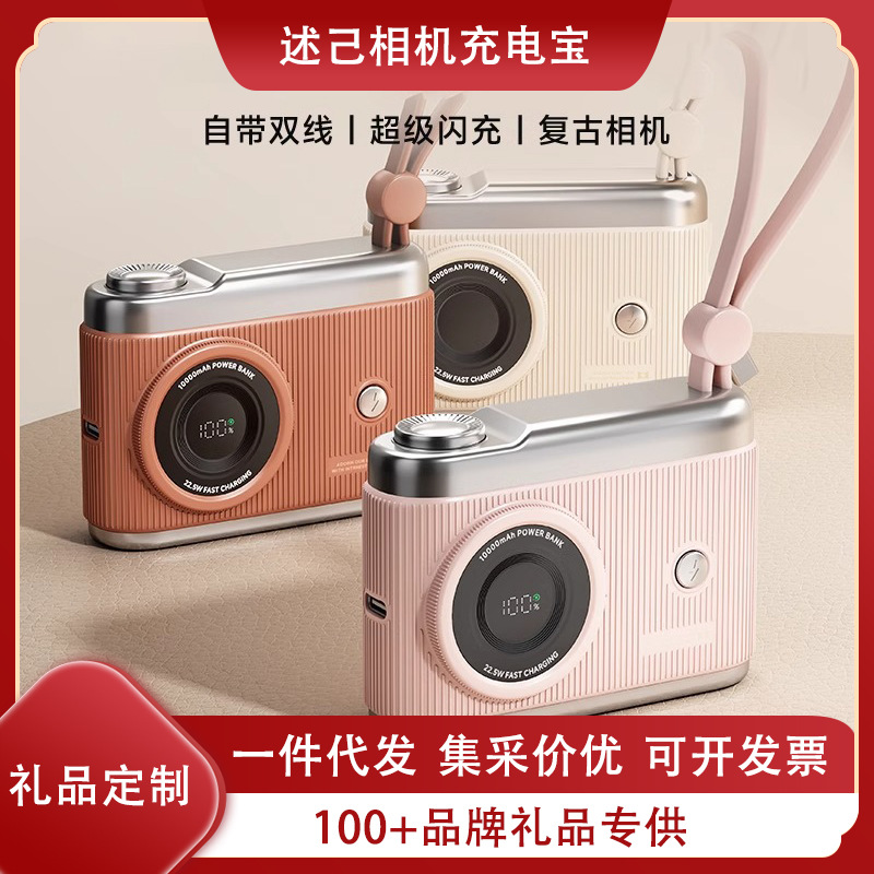 レトロなクリエイティブカメラの充電宝10000ミリアンペア22.5wは、ケーブル付きの軽薄なモバイル電源から充電されています