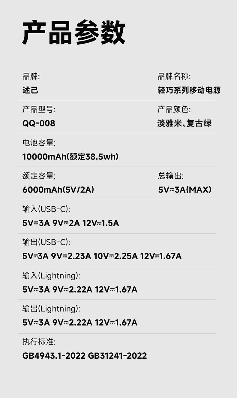3c认证述己创意充电宝1w毫安22.5w快充带双线迷你大容量移动电源