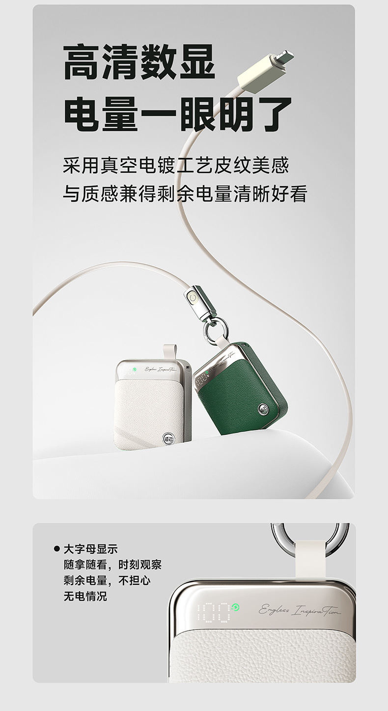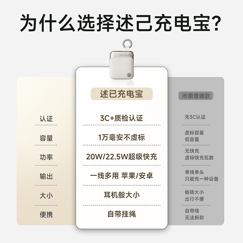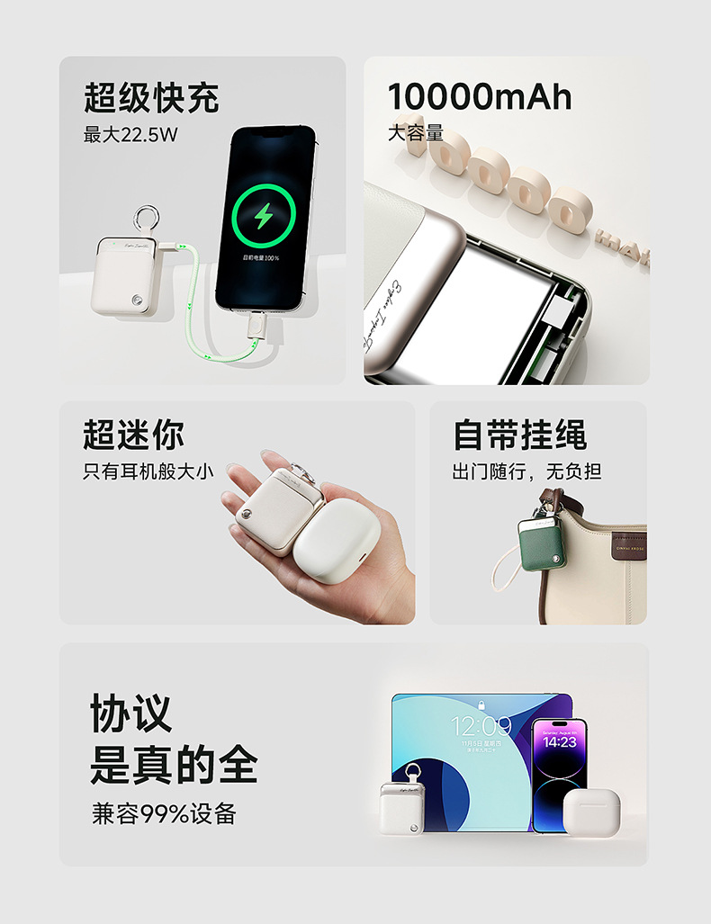 专利充电宝3c快充迷你自带挂绳数据线充电宝10000毫安移动电源