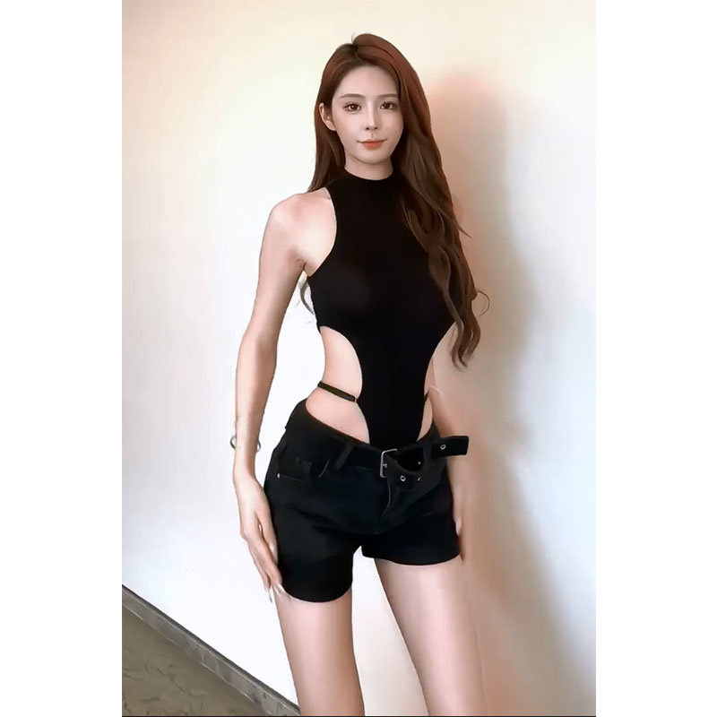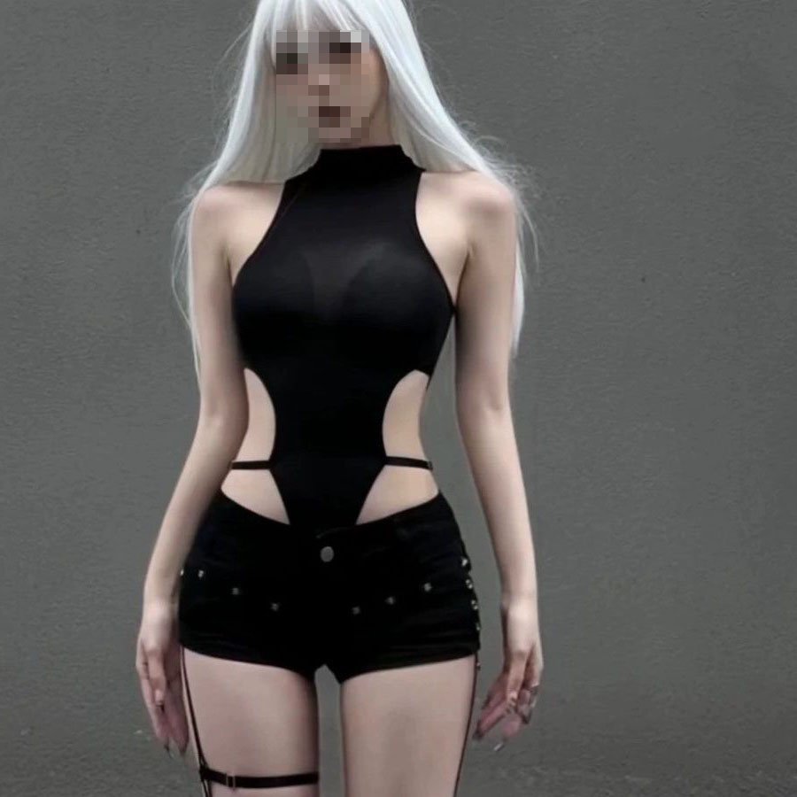 セクシーなホルターネックジャンプスーツ、ヨーロッパとアメリカンスタイル、多用途のインターネットセレブボトムストップス、女性用トレンディな中空トレンディホットガールインナーウェア、スリムフィット