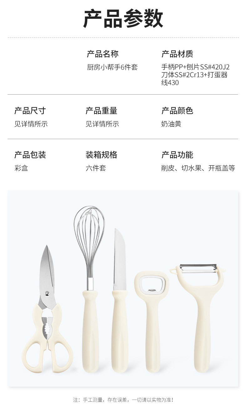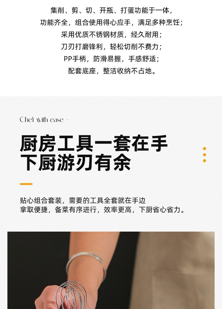 クリームスタイルのキッチンガジェットセット家庭用ステンレス鋼フルーツナイフピーラーはさみエッグビーター食品サプリメントツール