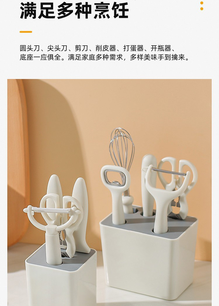 带收纳座厨房小工具5件套装削水果刀组合 瓜刨辅食剪水果刀五件套