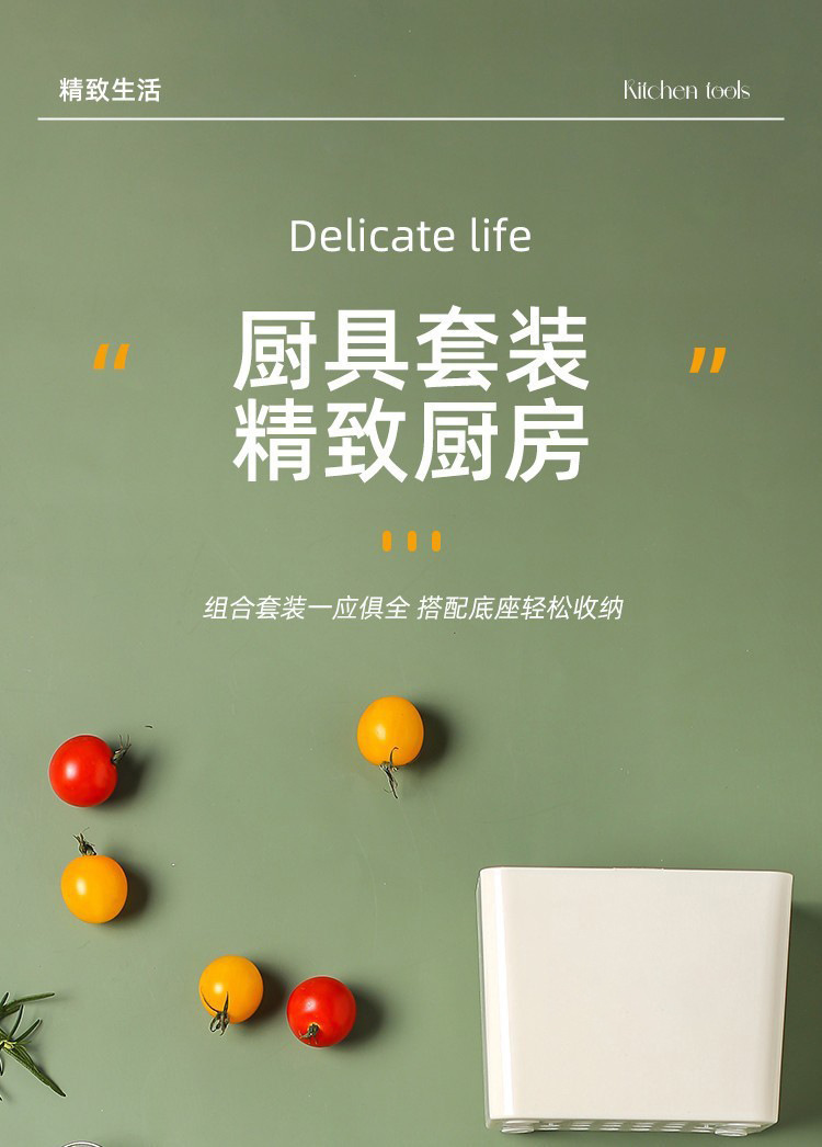 シリコンキッチン用品19点セット、クッキングスパチュラ、電気メッキヘッド、カッター収納バケツ、ナイフホルダー組み合わせ、クロスボーダー新12点セット
