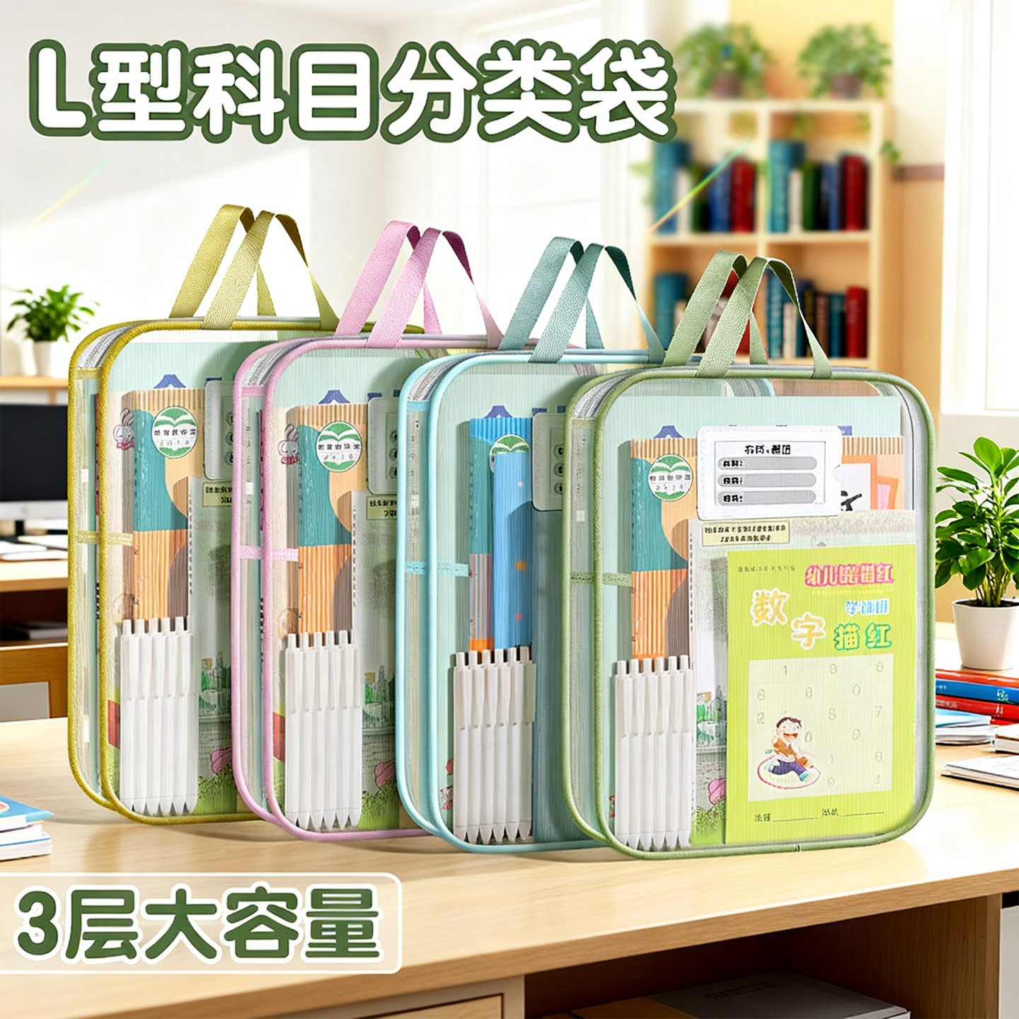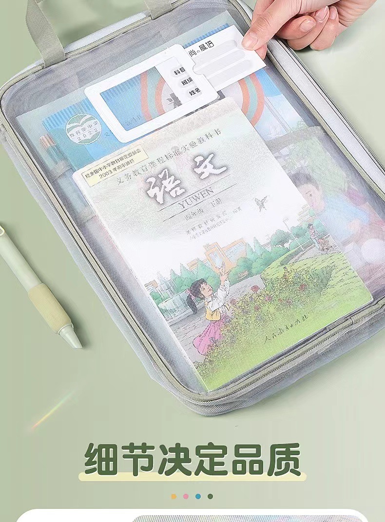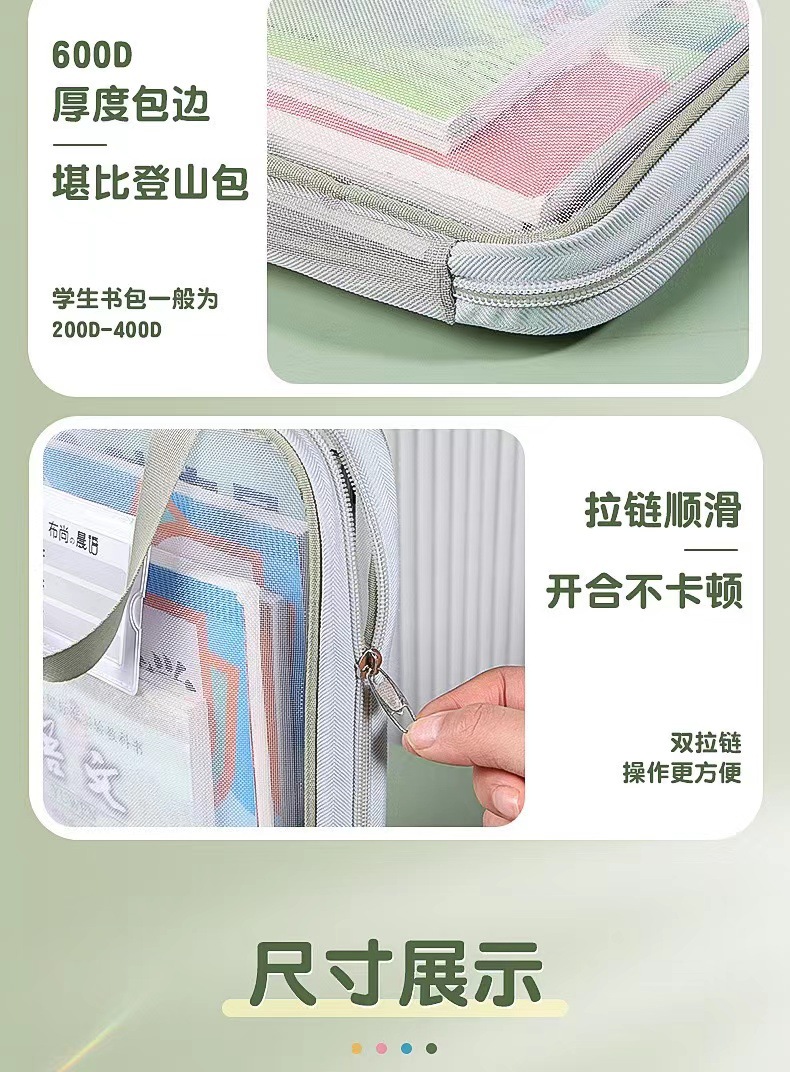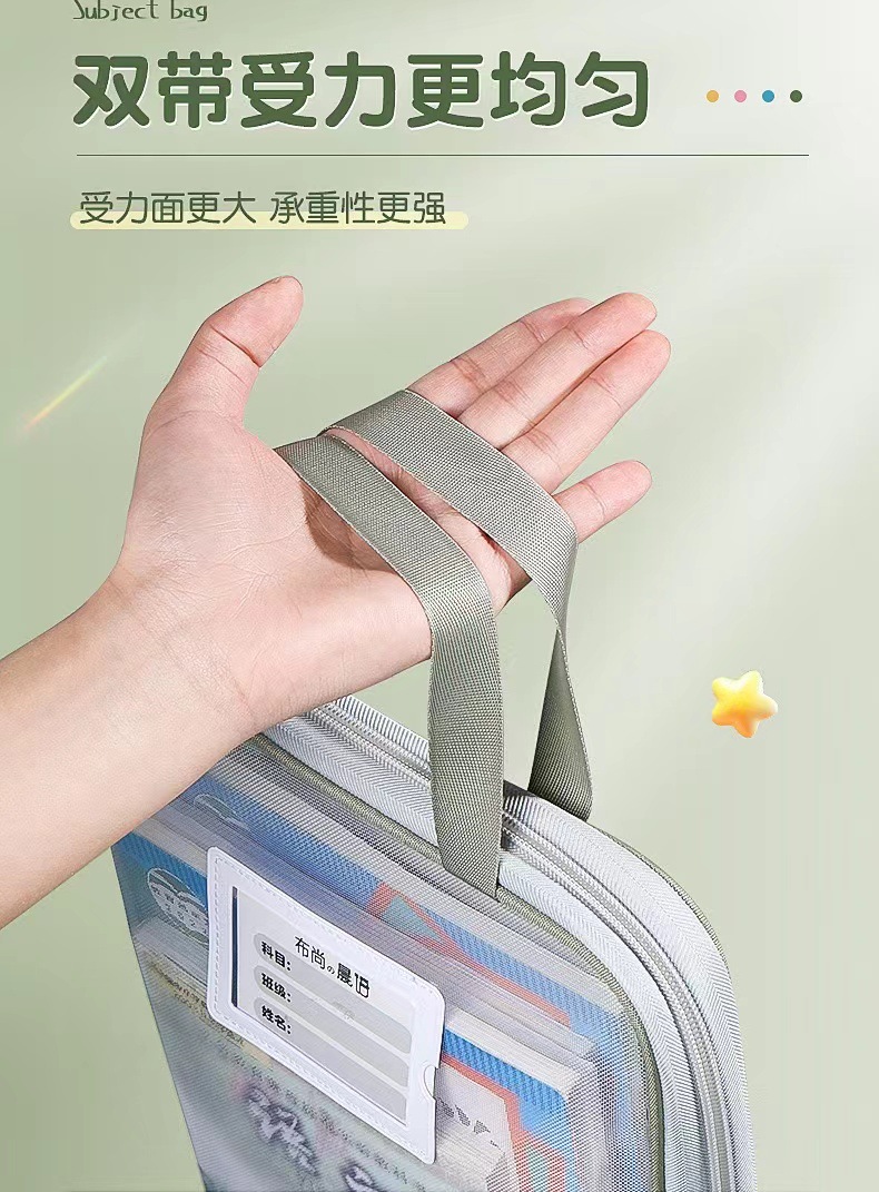加厚网纱科目袋大容量学生分类多层文件袋手提拉链L型科目分类袋