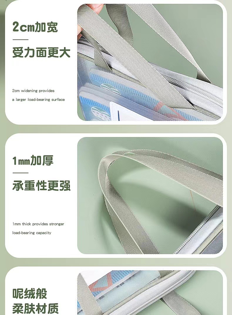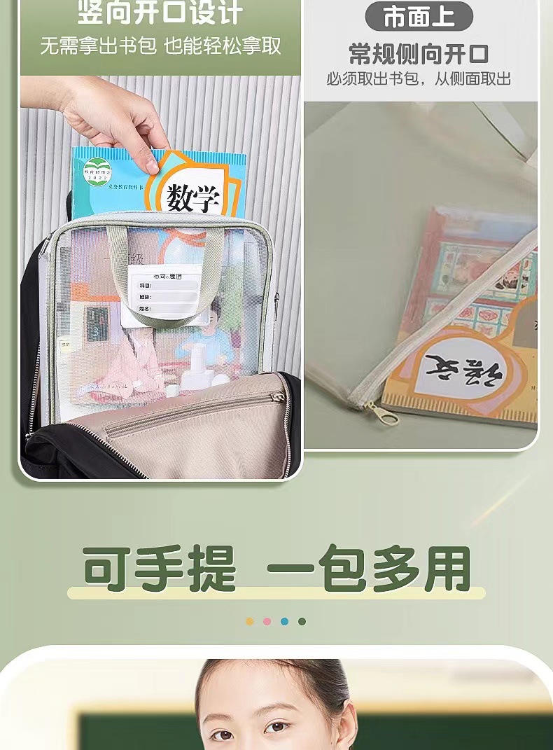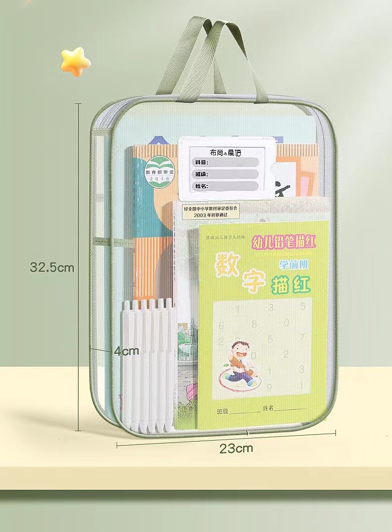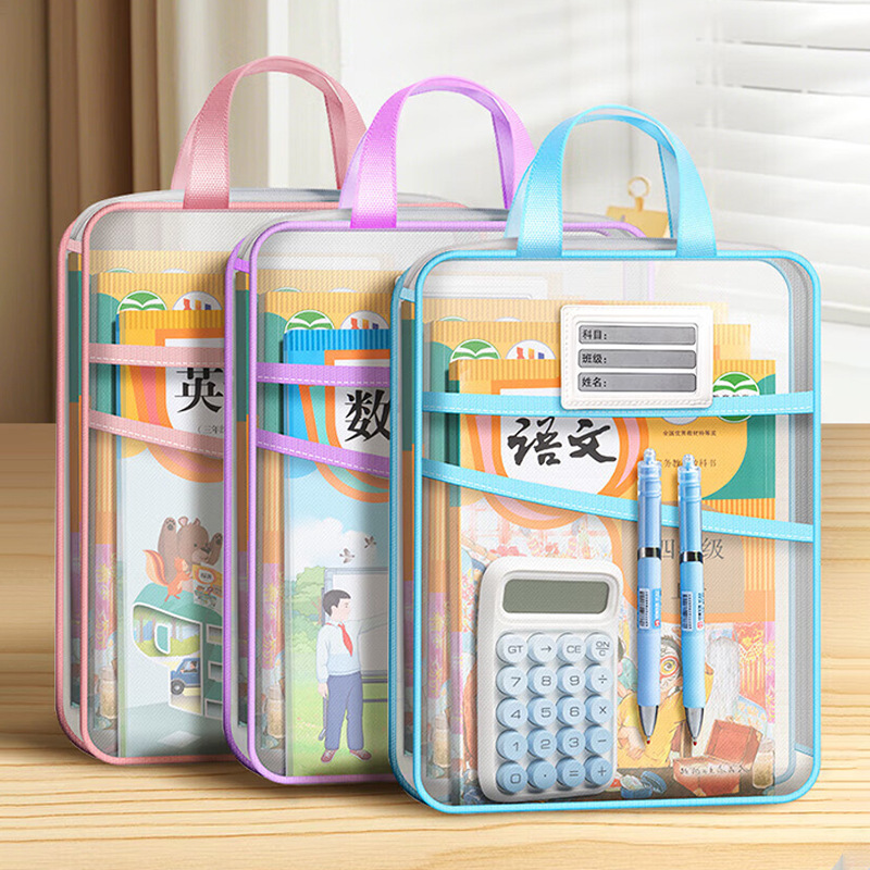 L型科目分类袋手提透明文件袋网纱大开口拎书袋考试袋试卷收纳袋