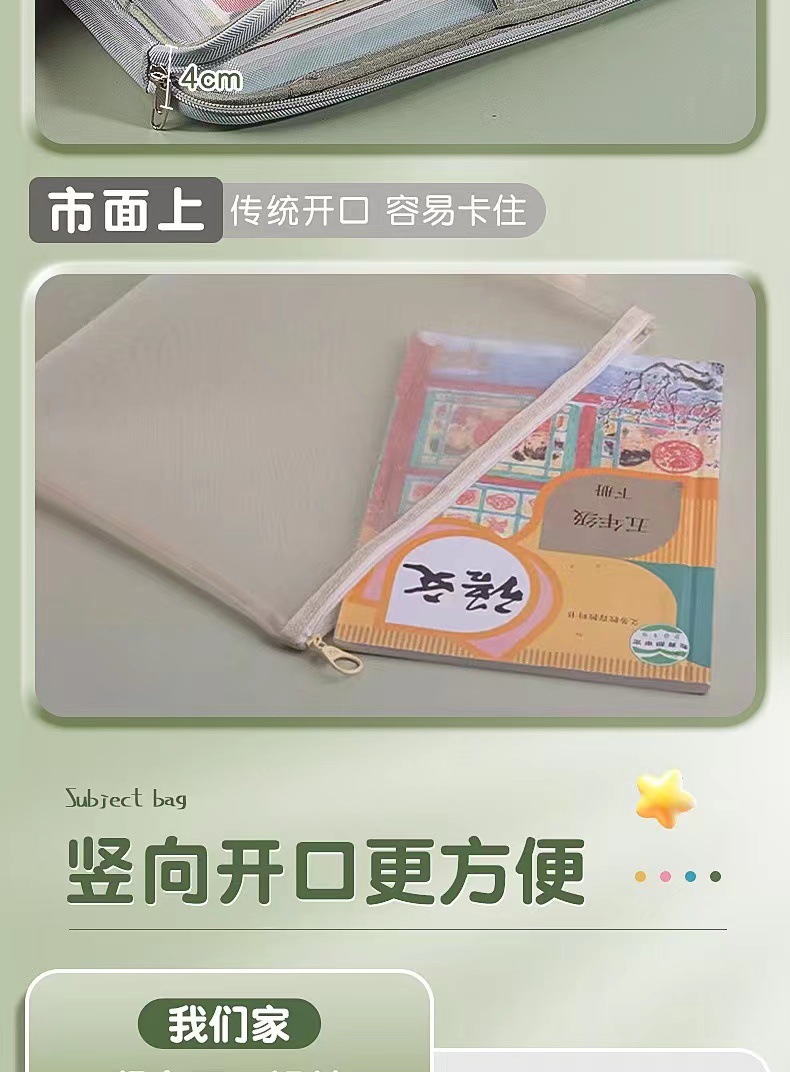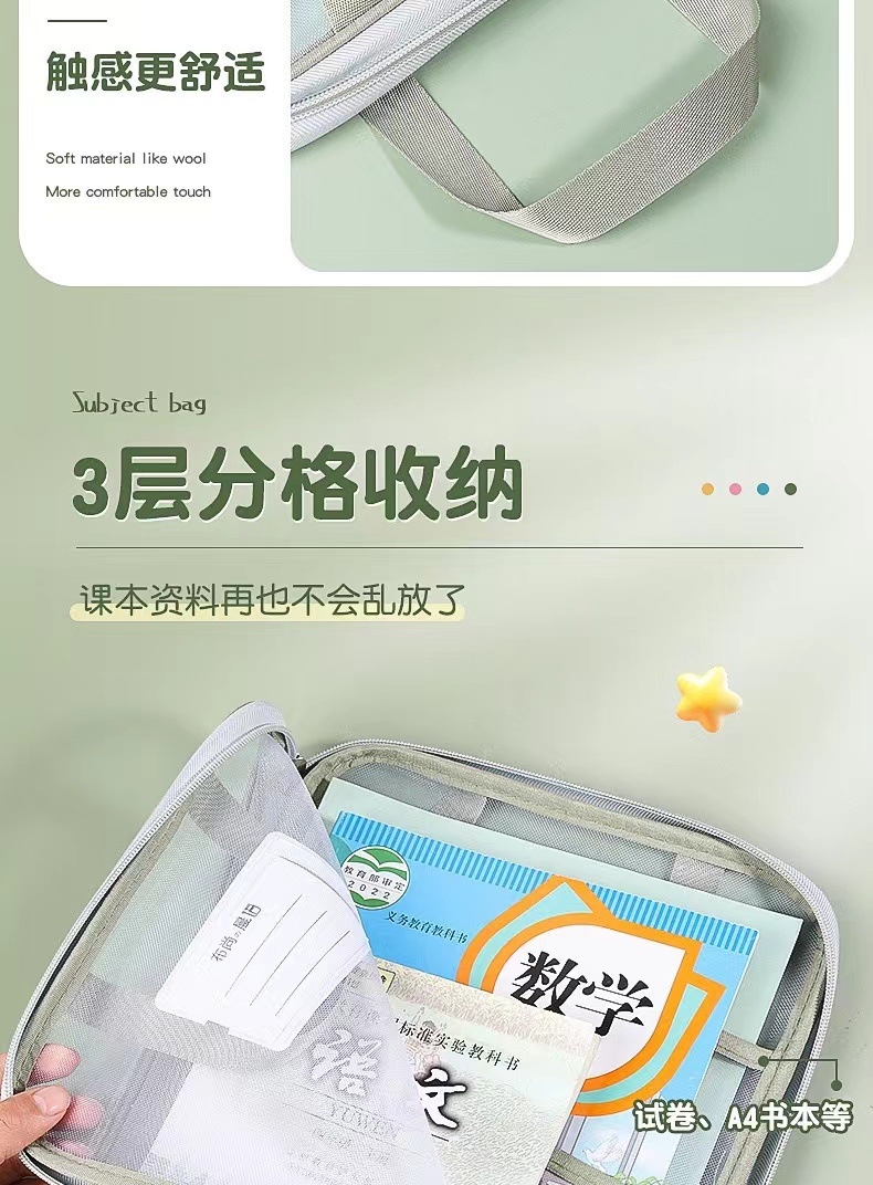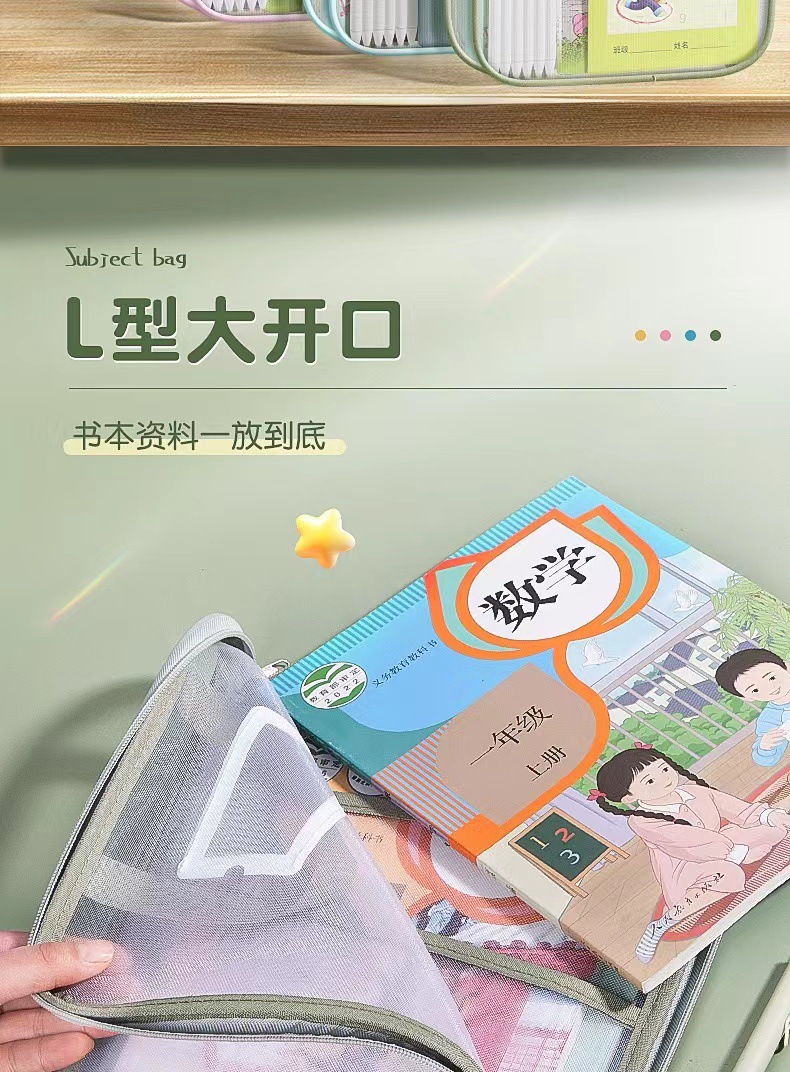 学科科目分类文件袋拉链式双层大容量小学生用资料书本课本分科袋