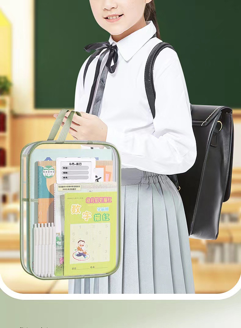 L型科目袋学科分類袋透明網糸ファイル袋ファスナー式大開口学生試験手提げ袋