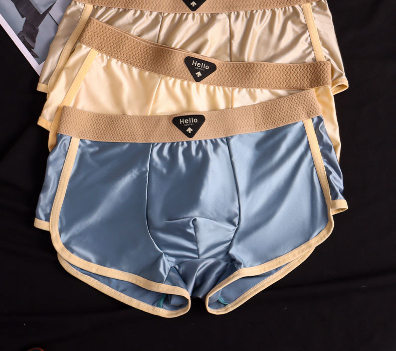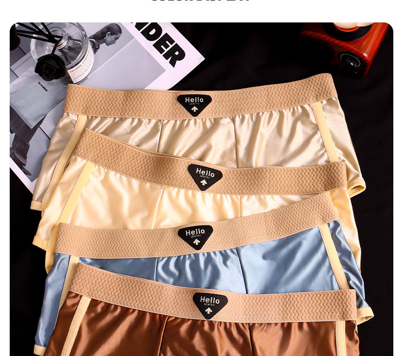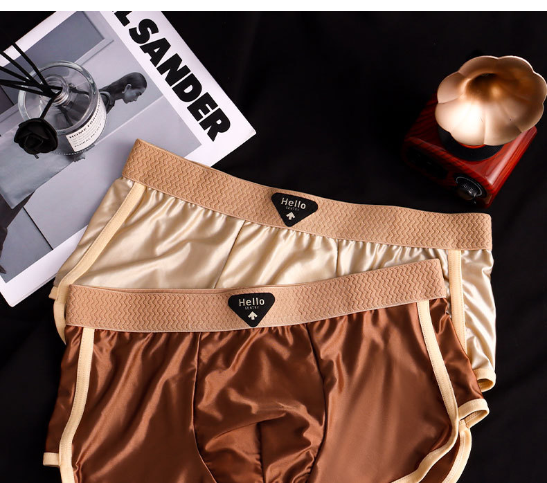 新しいメンズサテンハイカット下着、男性用の人気の軽い高級ソフトアイスシルクブリーフ、快適で通気性のあるブリーフ