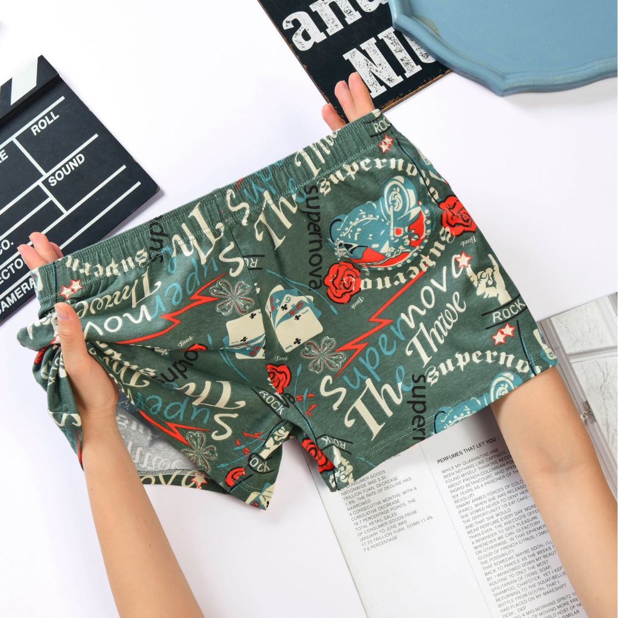 文芸復古風下着男性平角ズボン通気綿質四角ズボン快適ジャカード質感トレンドパンツ