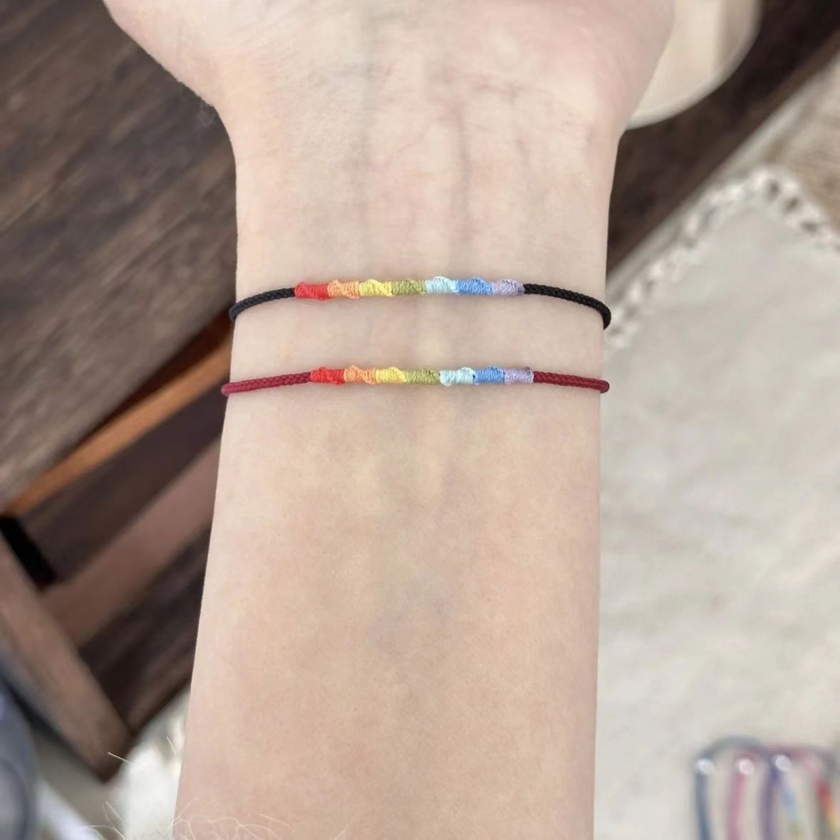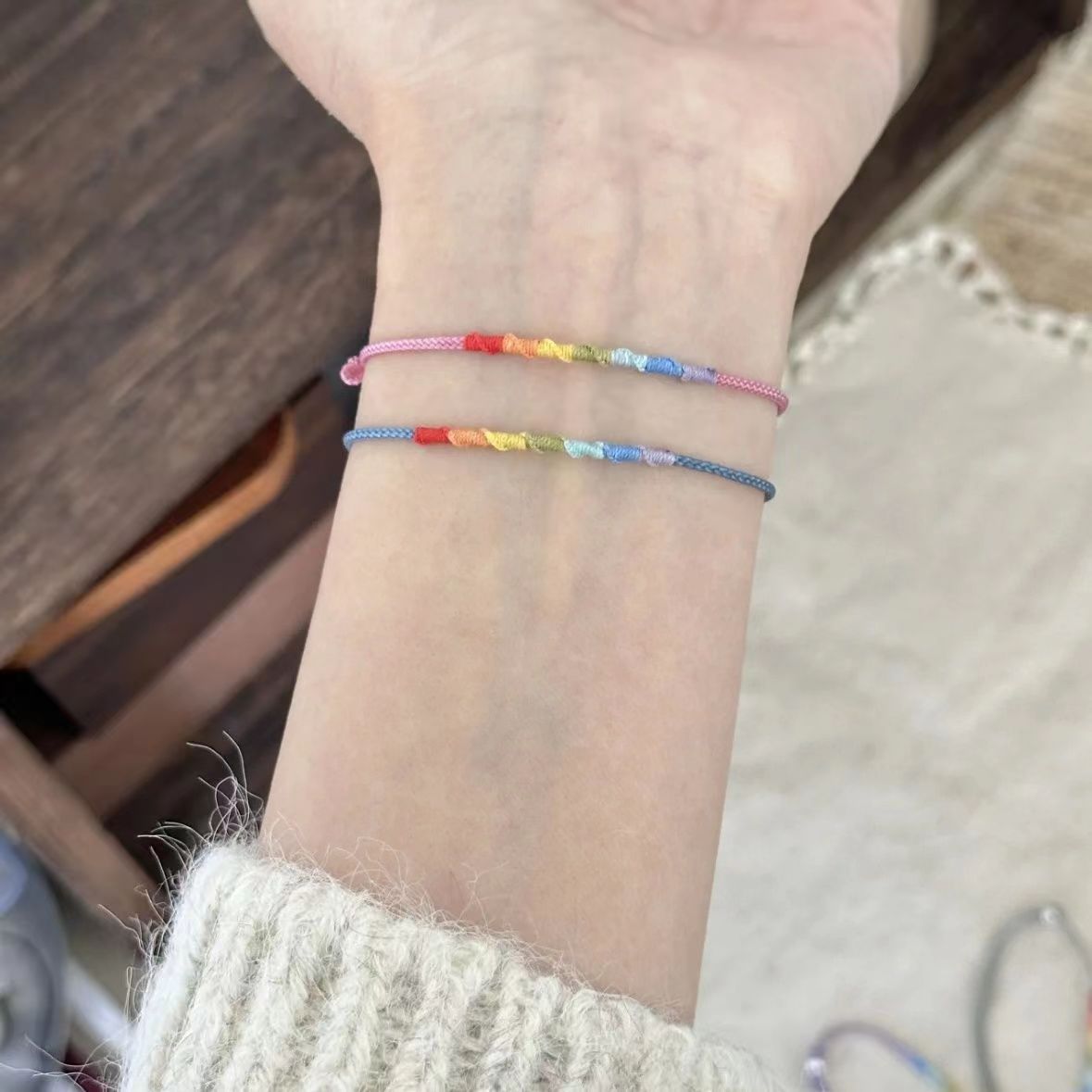 热卖超好运彩虹手绳编织成品ins多巴胺小众高级简约极细简约手绳