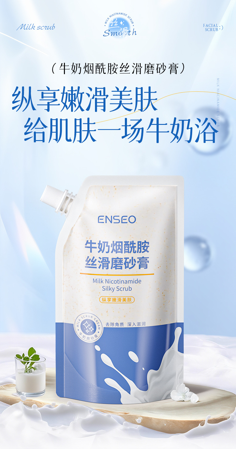 ENSEO ミルク ナイアシンアミド シルキー スクラブは、角質を取り除き、鶏の皮を白くし、全身を白くし、美容室と同じスタイルです。