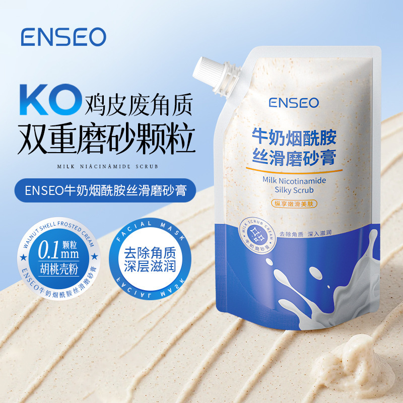 ENSEO ミルク ナイアシンアミド シルキー スクラブは、全身の角質を取り除き、深く洗浄し、鶏の皮を取り除き、白く柔らかく保湿します。