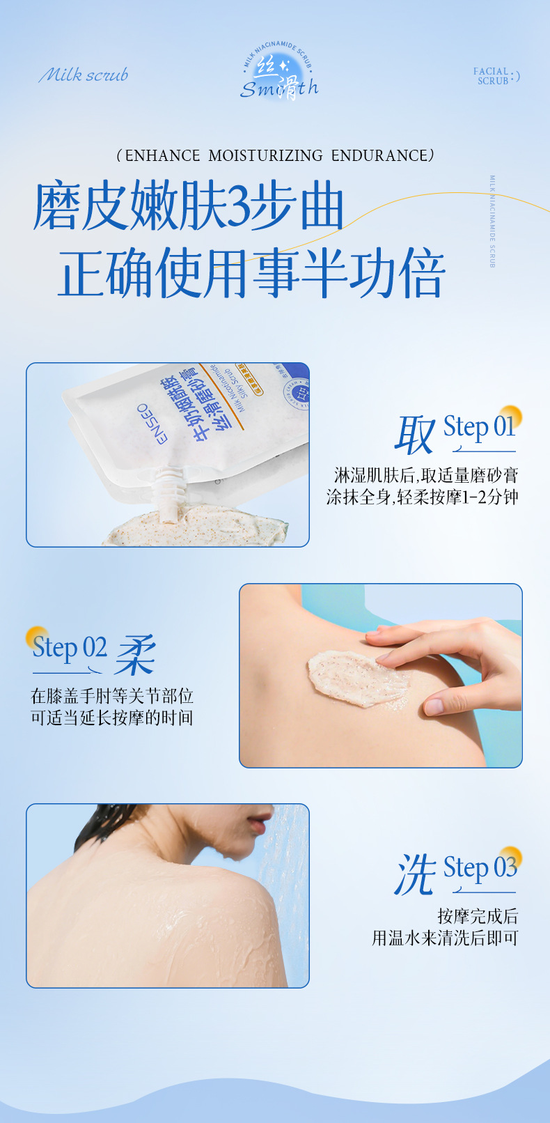 ENSEO牛奶烟酰胺磨砂膏全身清洁嫩滑去角质啫喱家庭装沐浴日用品