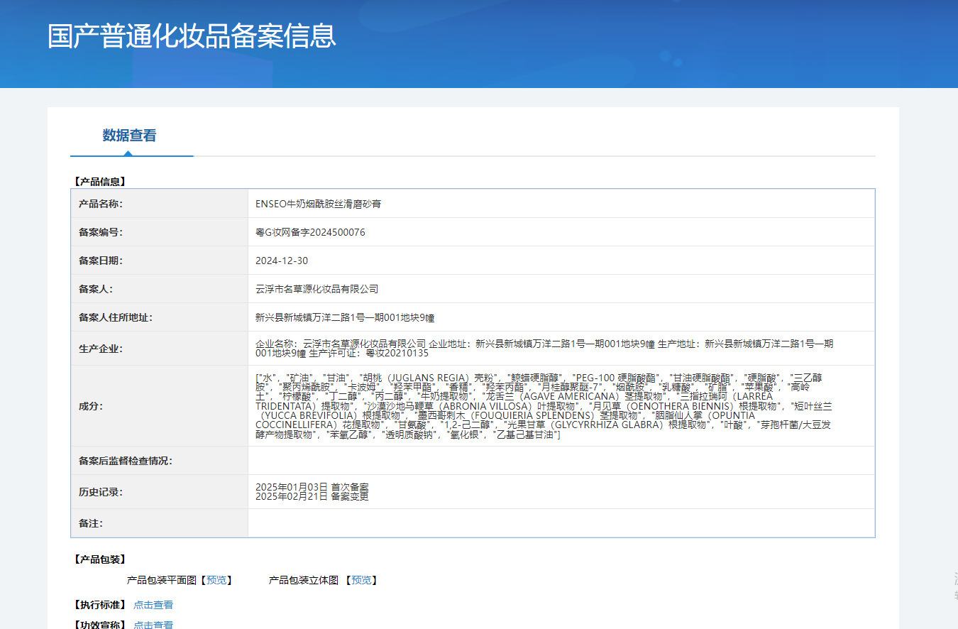 製品名 ENSEO ミルク ナイアシンアミド シルキー スクラブ