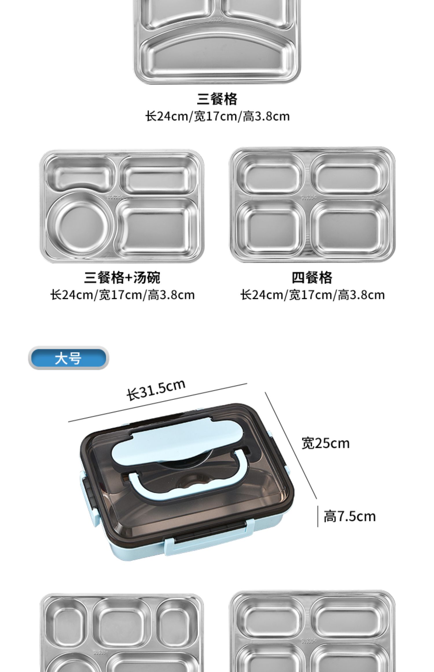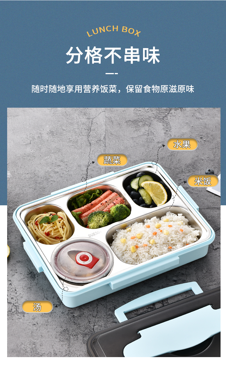 小学生用分割プレート、高校生用弁当箱、サラリーマン用卸売304ステンレス保温弁当箱