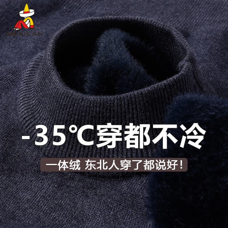600g 冬用フリースセーター メンズ 中衿 保温ニットセーター 中高年向け カジュアル 無地セーター メンズ 冬用 厚手
