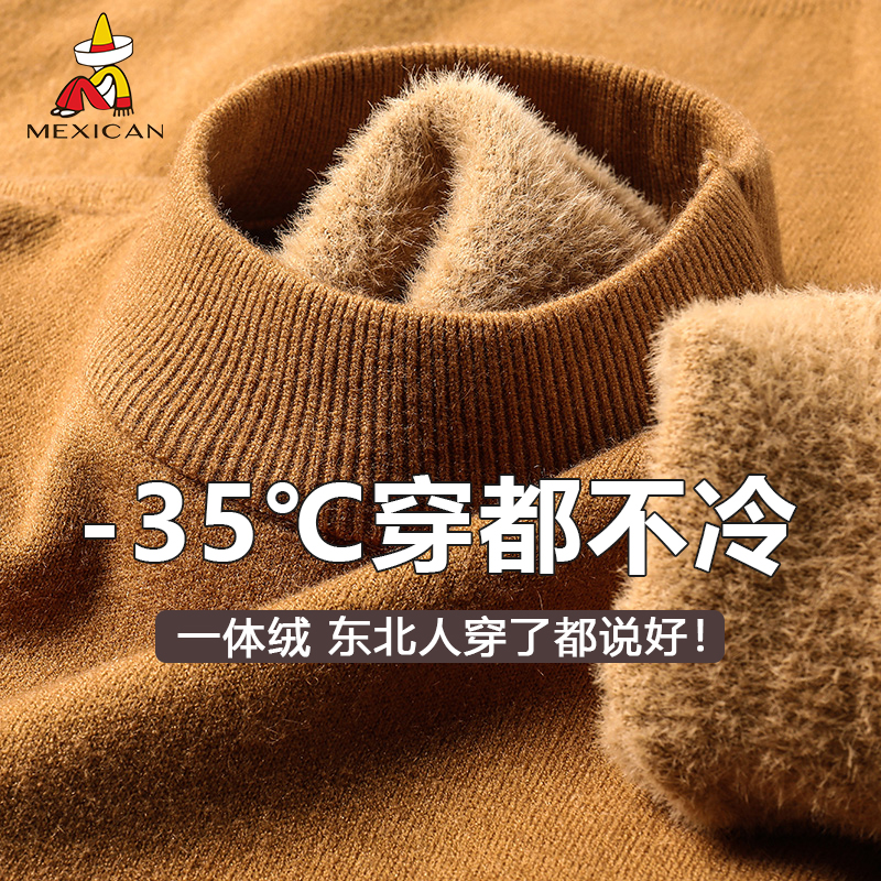 中年男性のベルベットの厚いセーター冬の新しい暖かくファッショナブルなハーフタートルネックセーターボトムストップス卸売