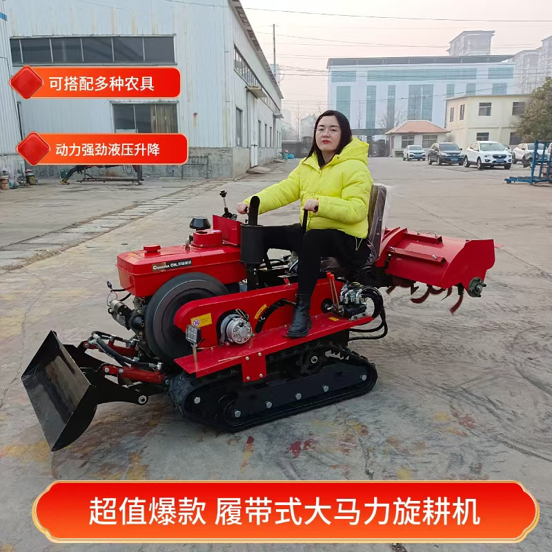 乗用キャタピラー式ミニ耕運機水田小型四駆畑林地開溝播種農用旋回耕運機