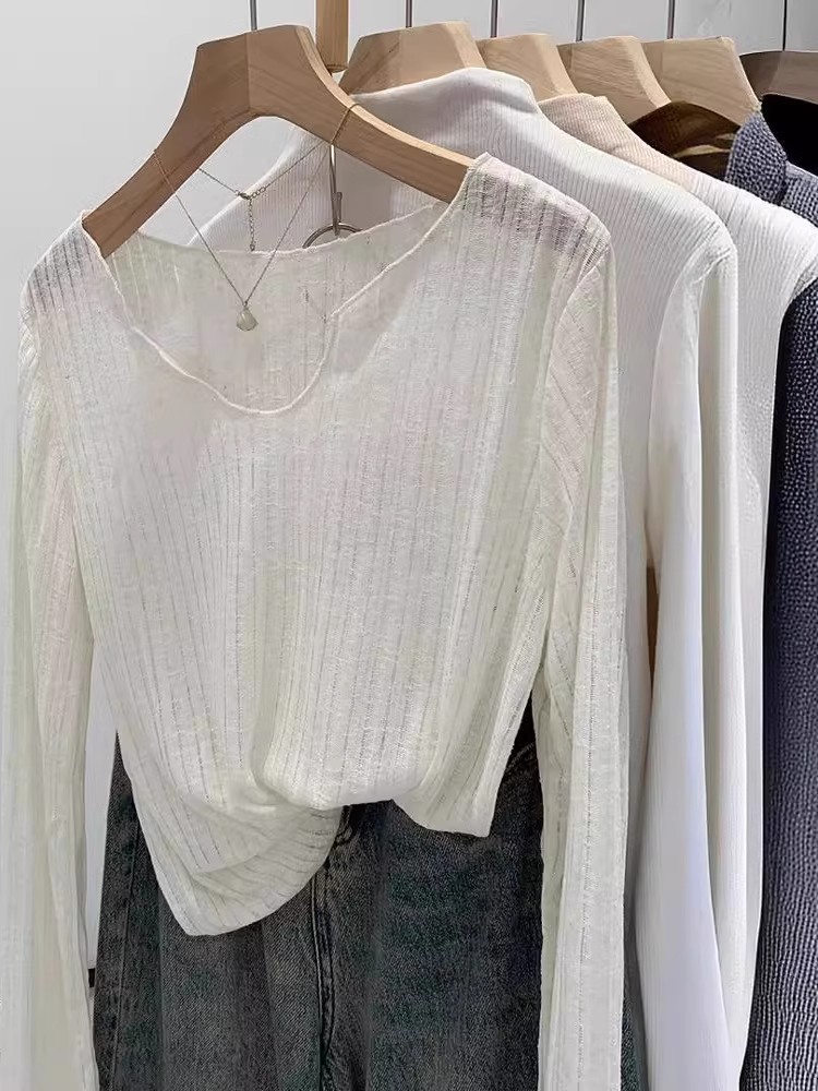 夏の新しいスタイルの微透け木耳日焼け止めブラウス、女性用、長袖、ゆったり、レイジーTシャツ、スイートガールトップ